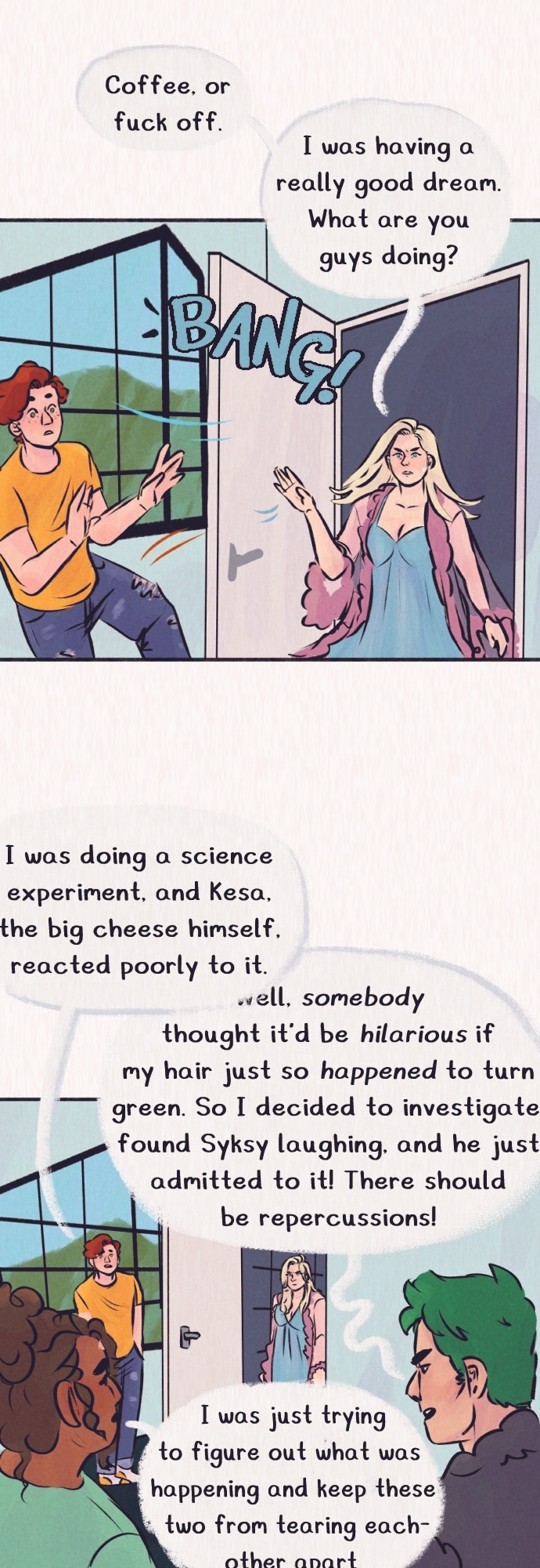 The Seasons are a mess. Kesa (Summer) never takes a break—even when he’s not in charge. Syksy (Autumn) has had feelings for two of his centuries-long roommates. Talvi (Winter) has a quick temper and is typically hiding in her room. Kevat (Spring) is doing her best to keep everyone from strangling each other. How will the others handle themselves when Kevat gets hit with a sleeping curse? What will they do when they find out there are bigger things at play?
