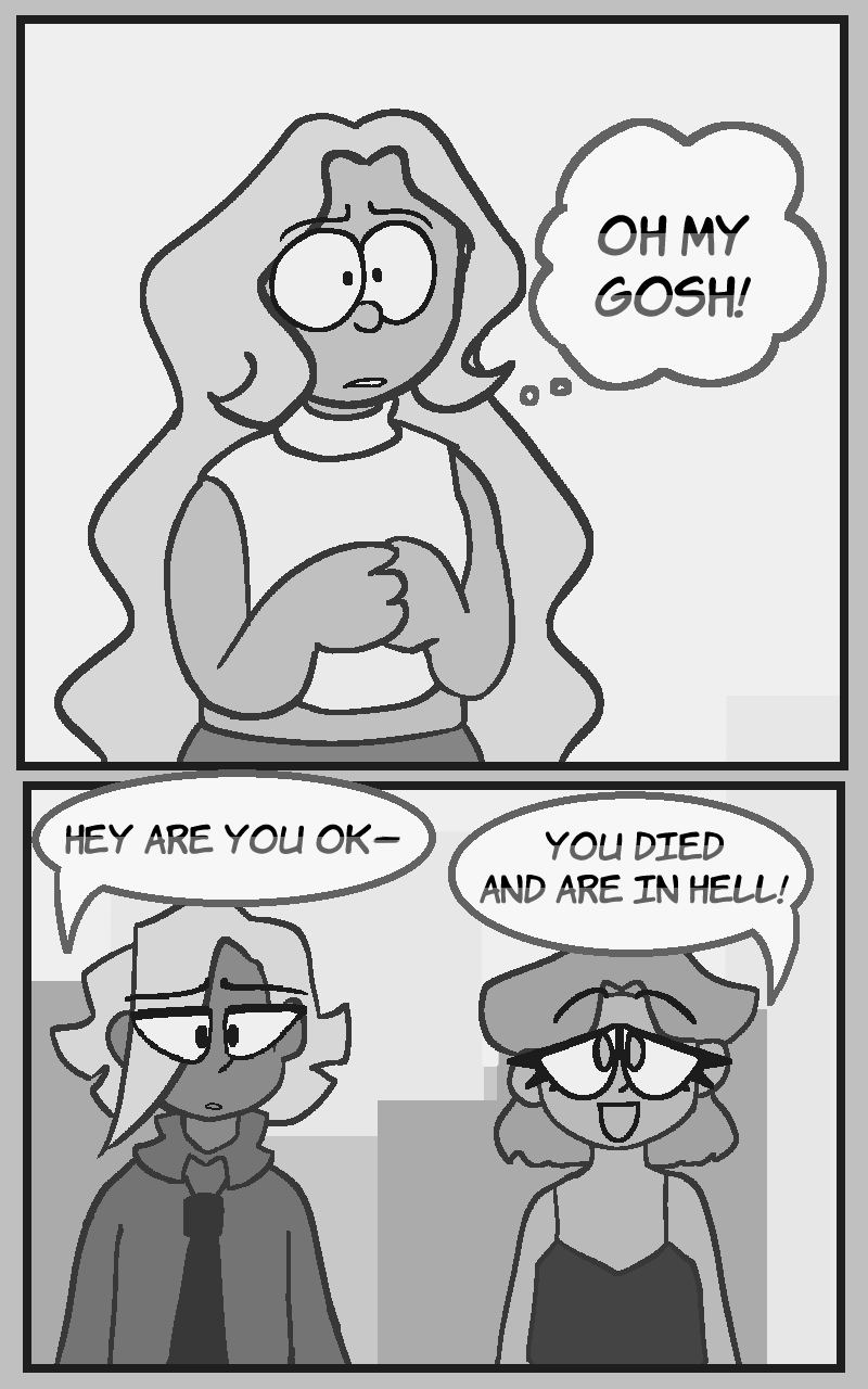 my beta reader/friend saw the final page without context and thought it was like a satnav "you have arrived at your destination" type thing with the dialogue and its all I think about now