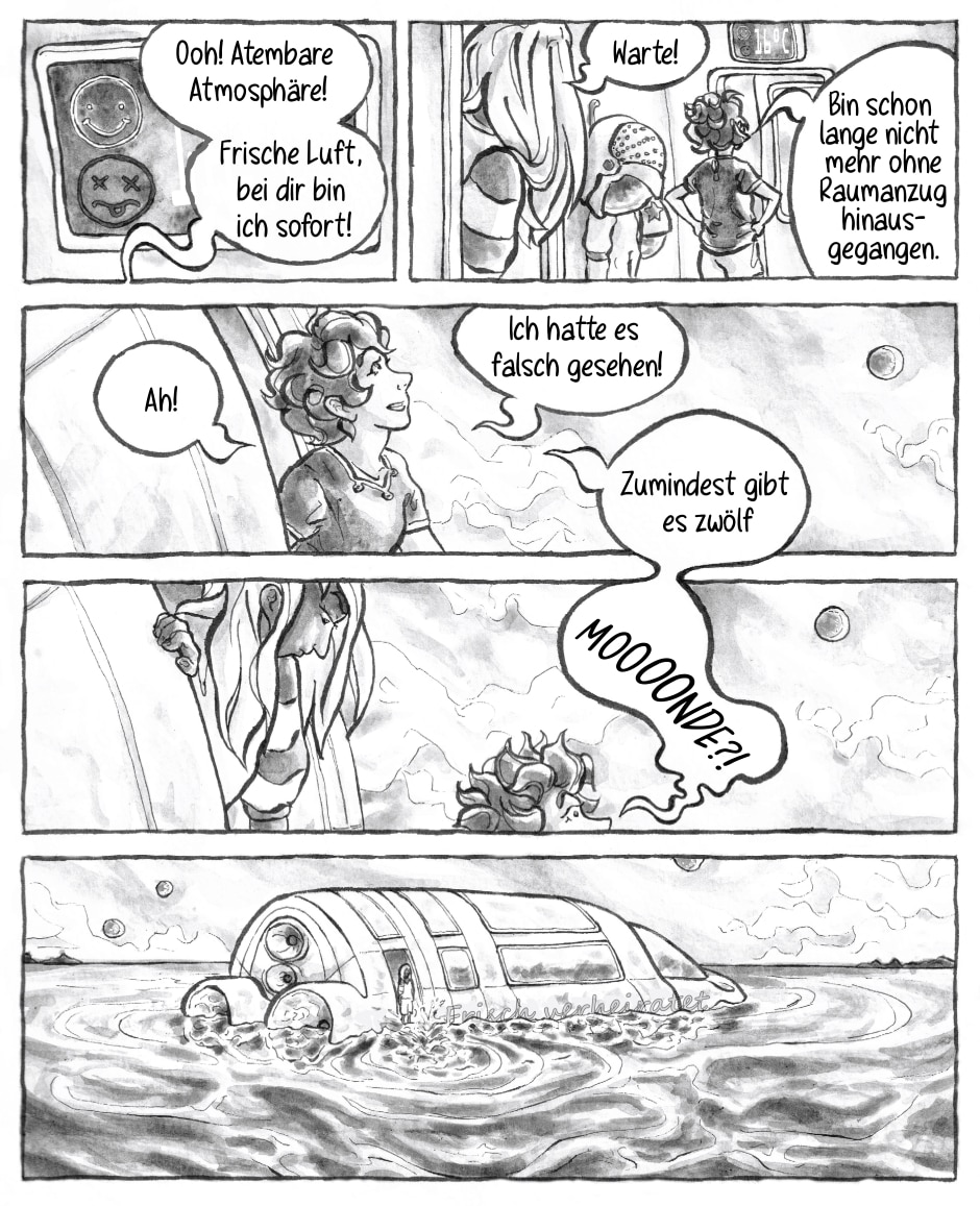 Anisha und Brune campen auf einem netten Zwergplaneten, ganz nah an berühmten Sehenswürdigkeiten. Sie genießen ihren Urlaub in der ⨳⁜⁕ Galaxie, lernen neue Orte kennen und verbringen Zeit miteinander, bevor sie wieder zur Arbeit müssen.