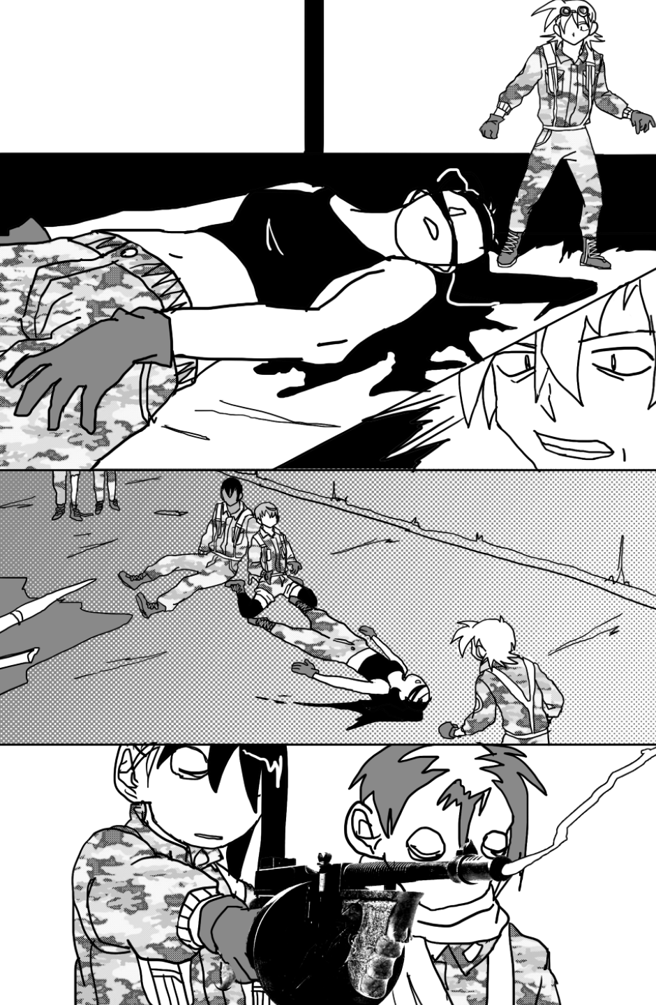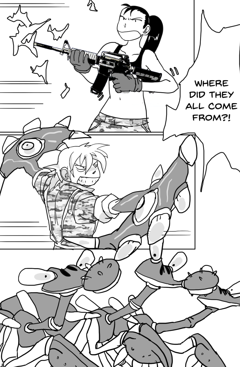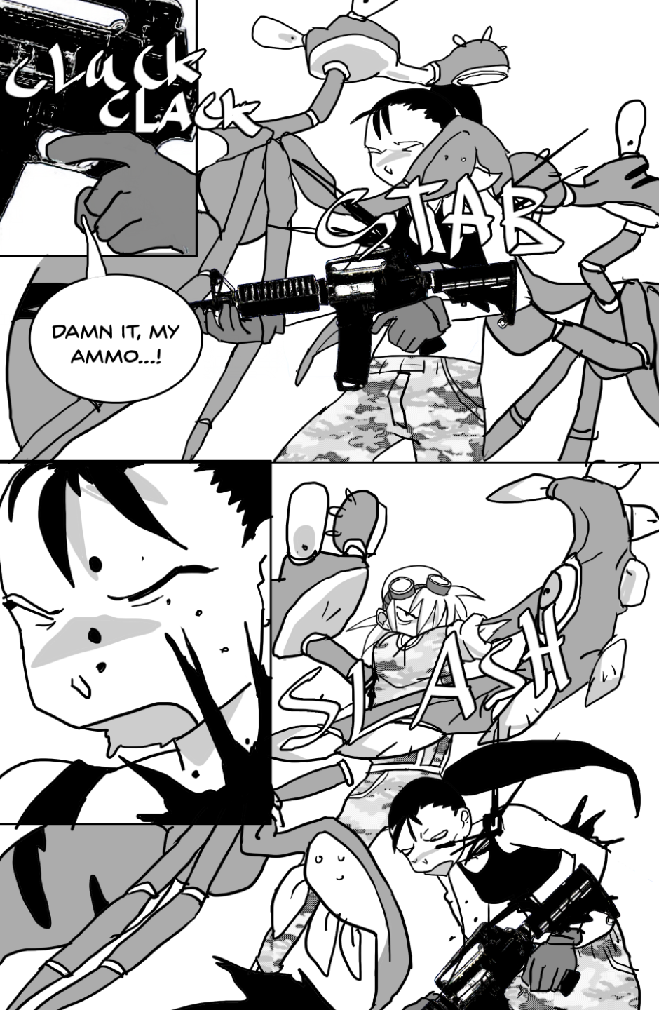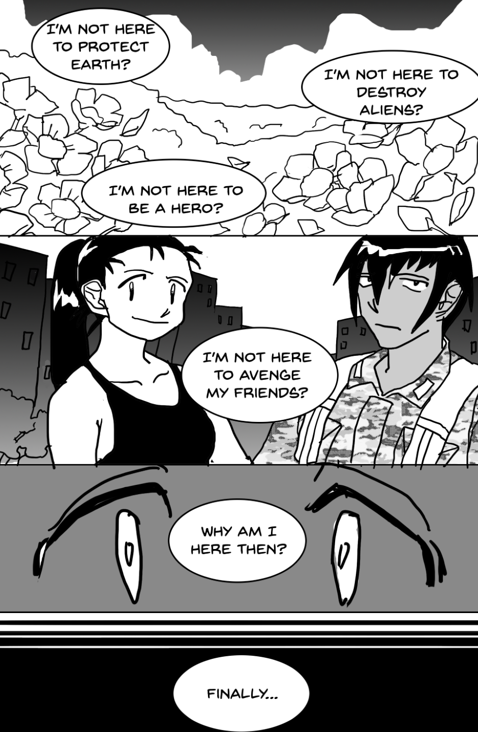 She covers in fear as she's facing off aliens and mutants, who ravage the Earth after a great catastrophe drove the population into the hidden corners of the world, leaving the hope to the kids with guns to defend.