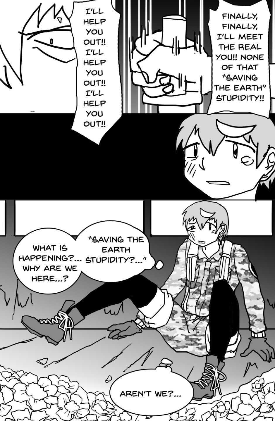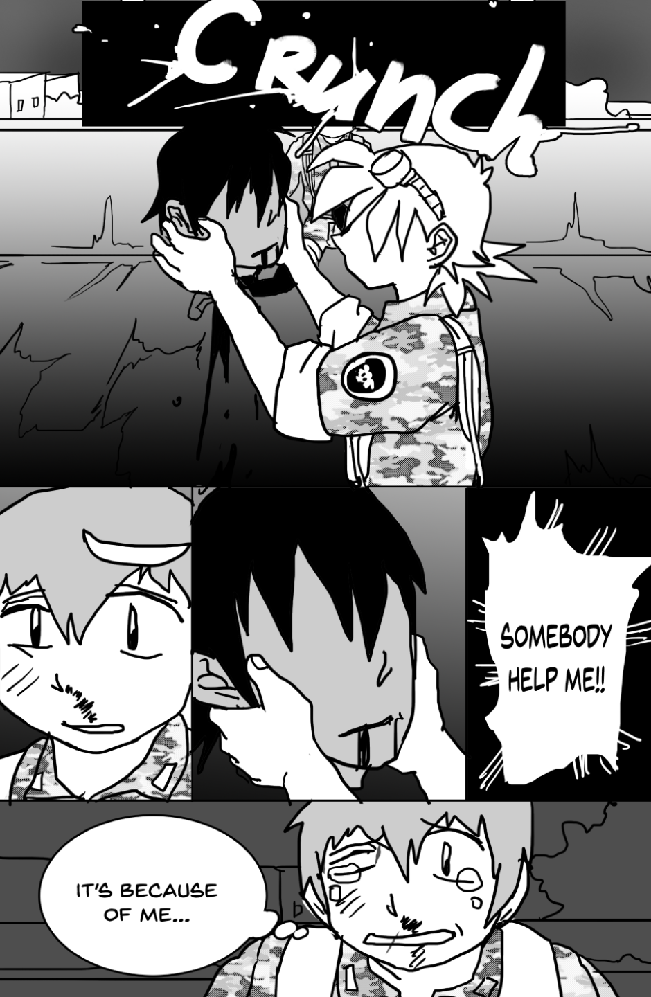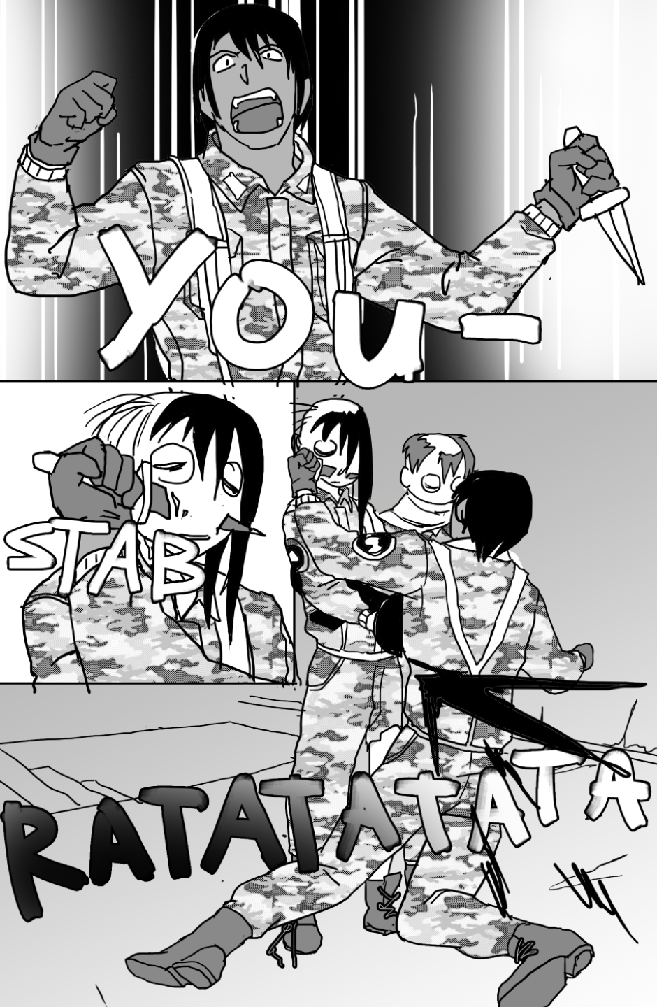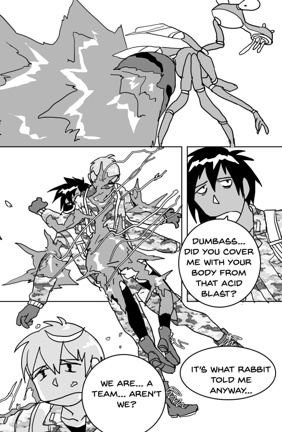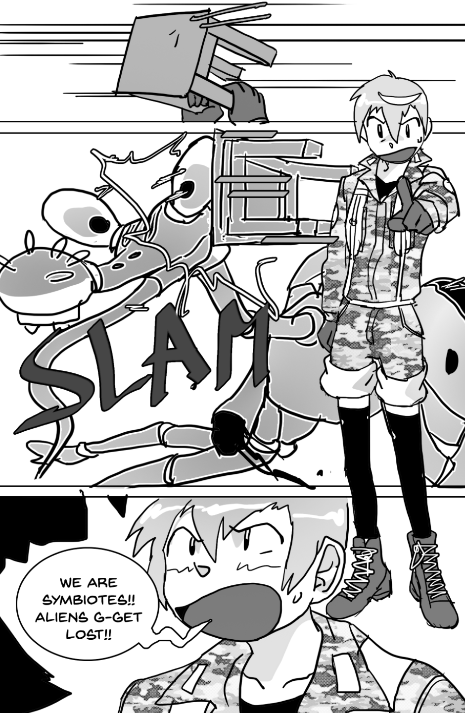She covers in fear as she's facing off aliens and mutants, who ravage the Earth after a great catastrophe drove the population into the hidden corners of the world, leaving the hope to the kids with guns to defend.
