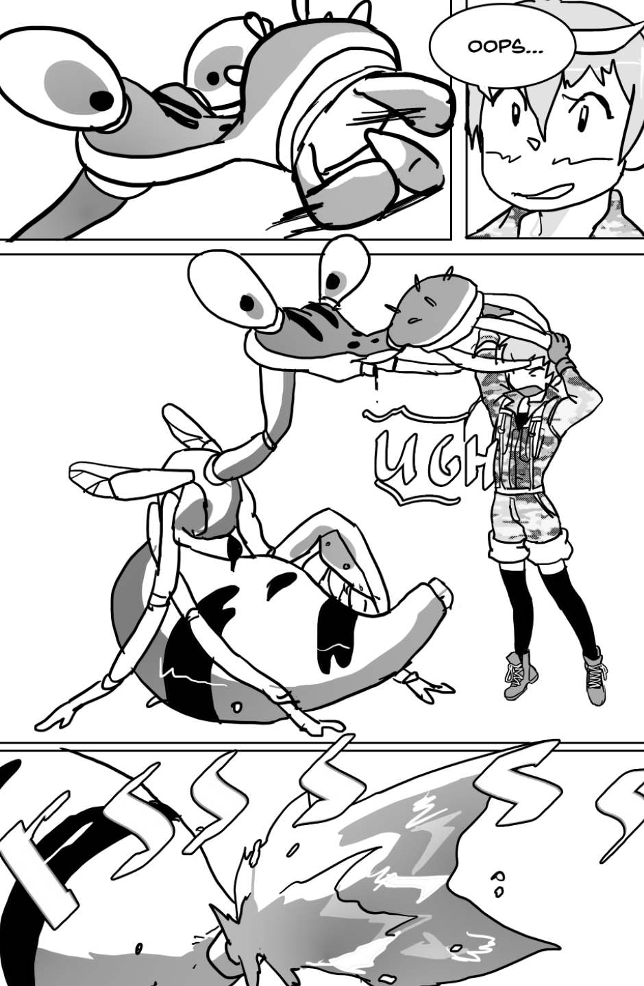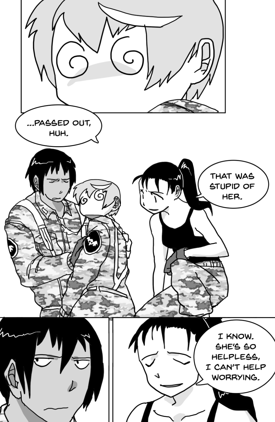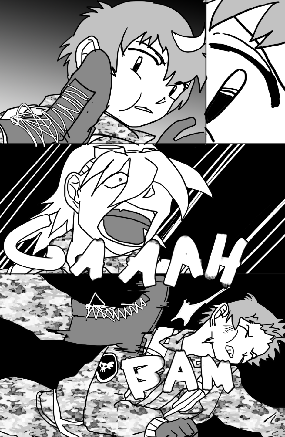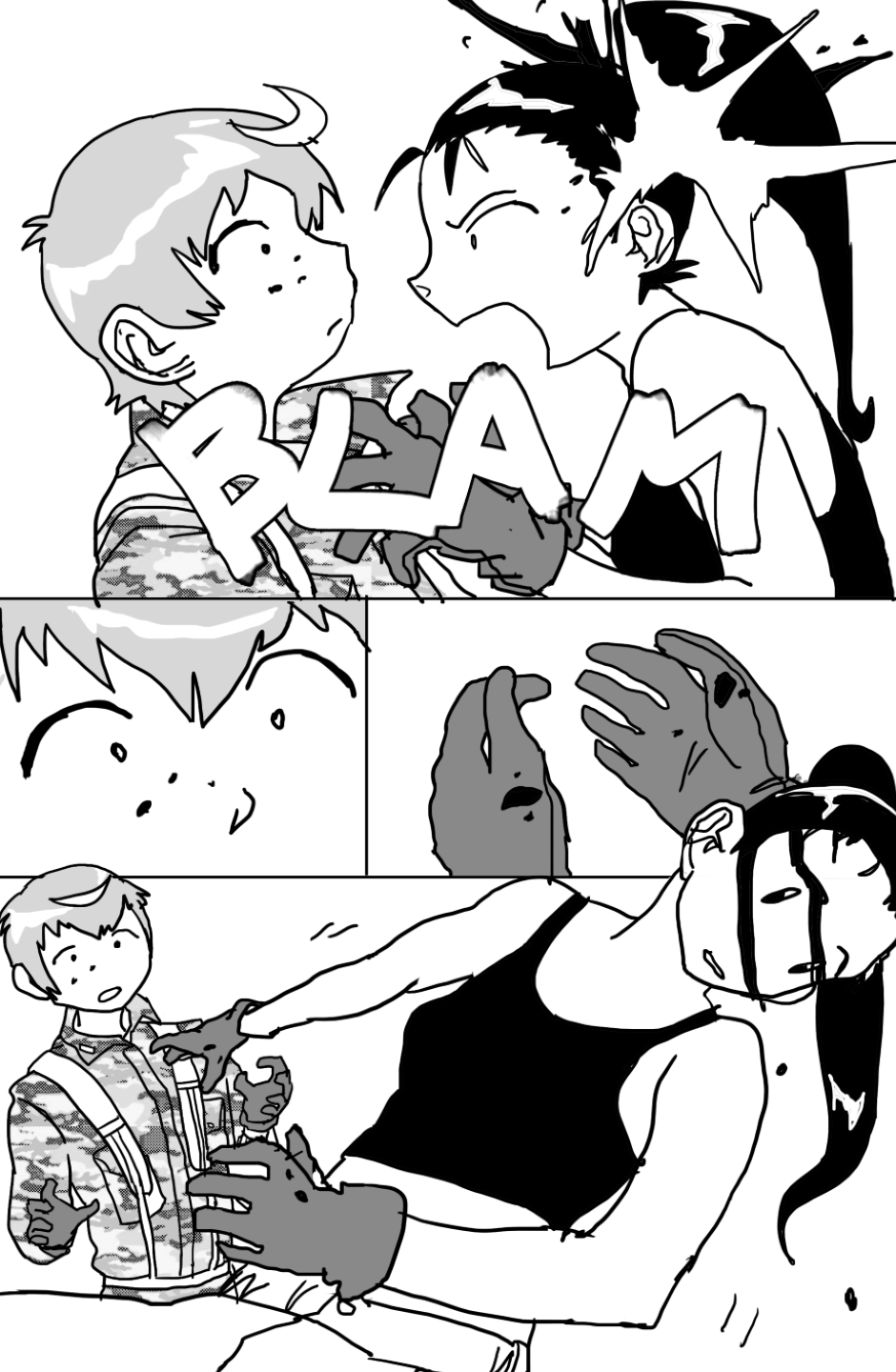 She covers in fear as she's facing off aliens and mutants, who ravage the Earth after a great catastrophe drove the population into the hidden corners of the world, leaving the hope to the kids with guns to defend.