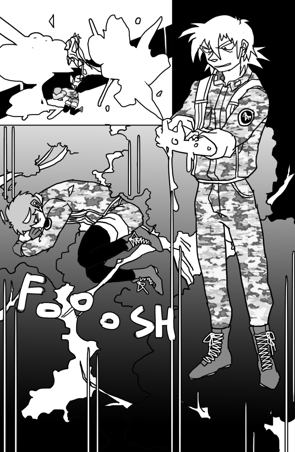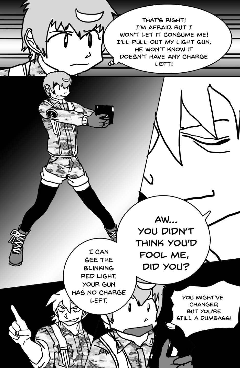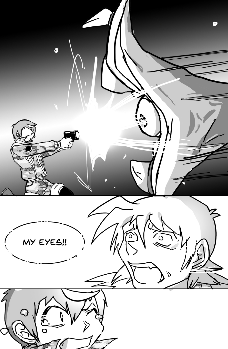She covers in fear as she's facing off aliens and mutants, who ravage the Earth after a great catastrophe drove the population into the hidden corners of the world, leaving the hope to the kids with guns to defend.