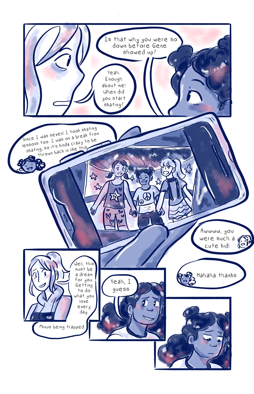 Rosa is an easy-going skater girl. Sadie is an anxious academic who accidentally frees a vile skate god into the world. The skate god traps the pair in a roller rink, forcing them to compete in skate competitions. While being stuck together, Rosa and Sadie form a connection.