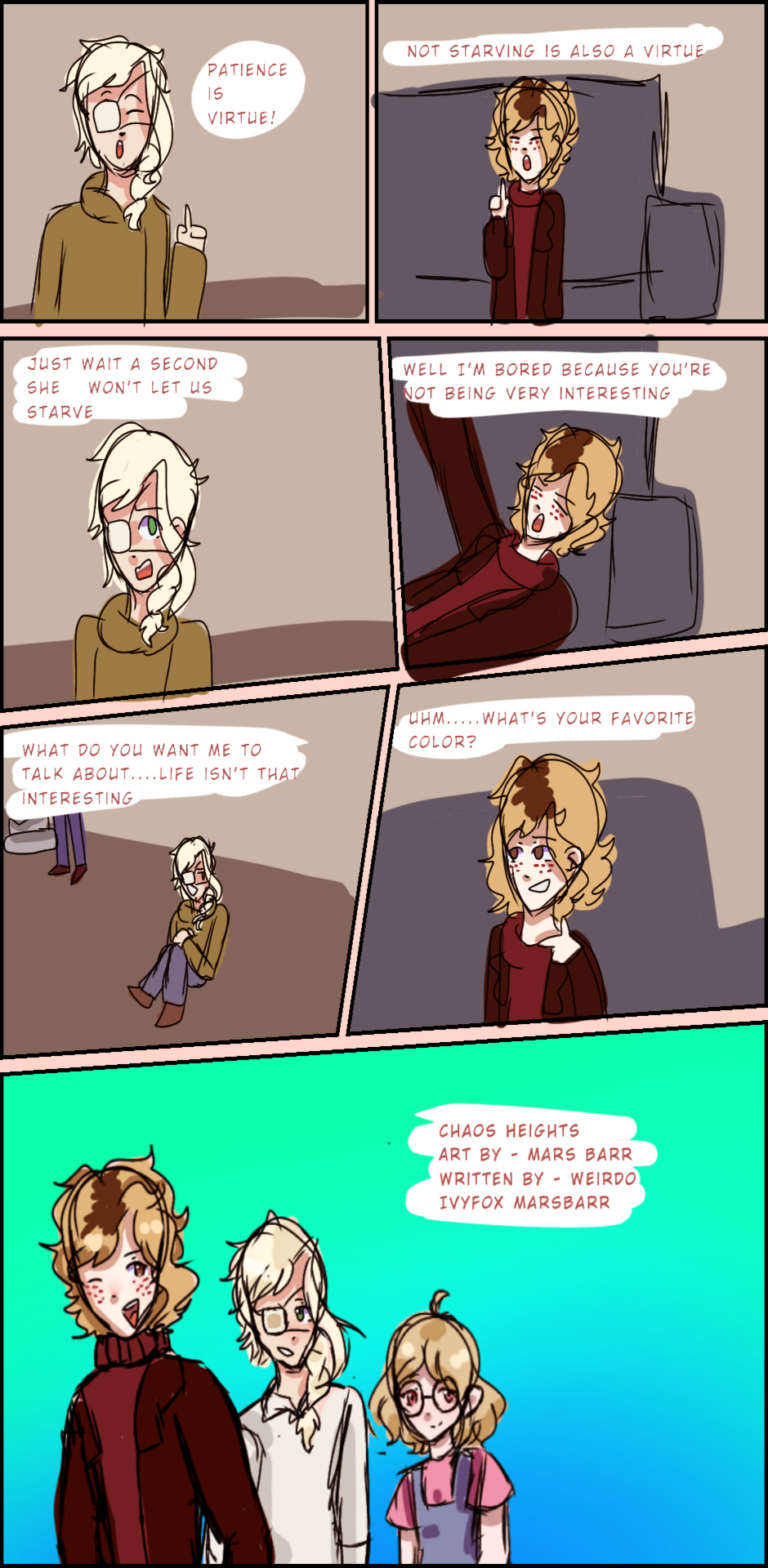 After a deadly virus killed a large chunk of the population and led to an overthrowing of the government, many people had to find their own unique ways to survive. Join Arrow, Sammy, Petal and many other characters as they navigate a post apocalyptic world filled with gangs, good shortage and many past and current chaotic relationships in the town now dubbed "Chaos Heights"