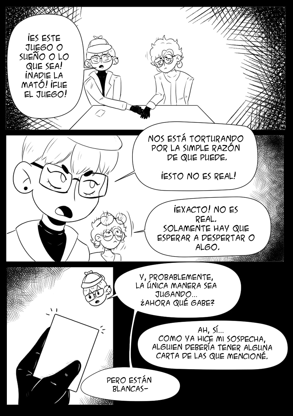 Comienza el juego. Los personajes empiezan a descubrir que no se conocían muy bien entre si, a pesar de ser amigos. A medida que juegan, secretos oscuros de su pasado van a apareciendo, como espejismos en la oscuridad del juego.