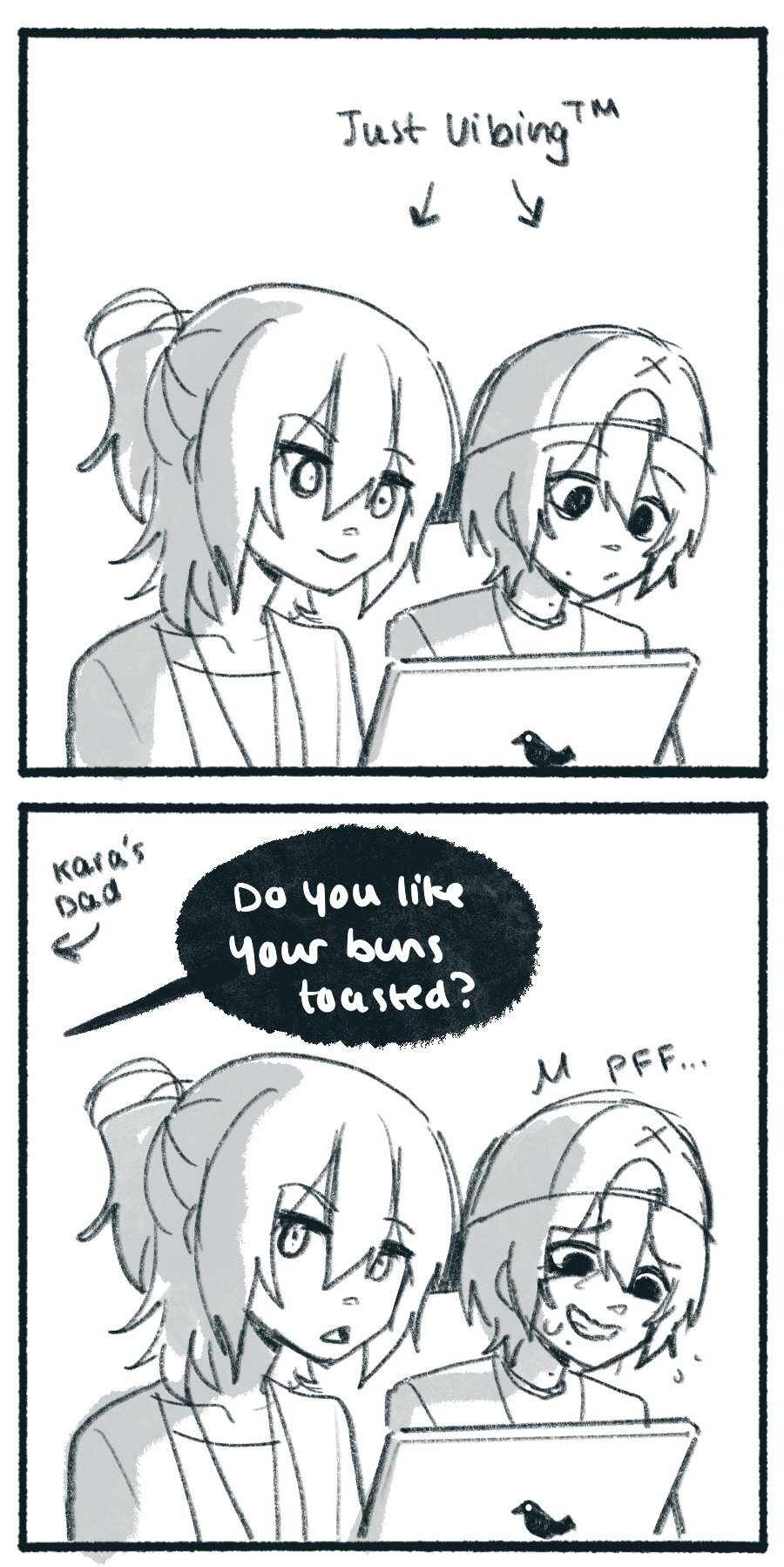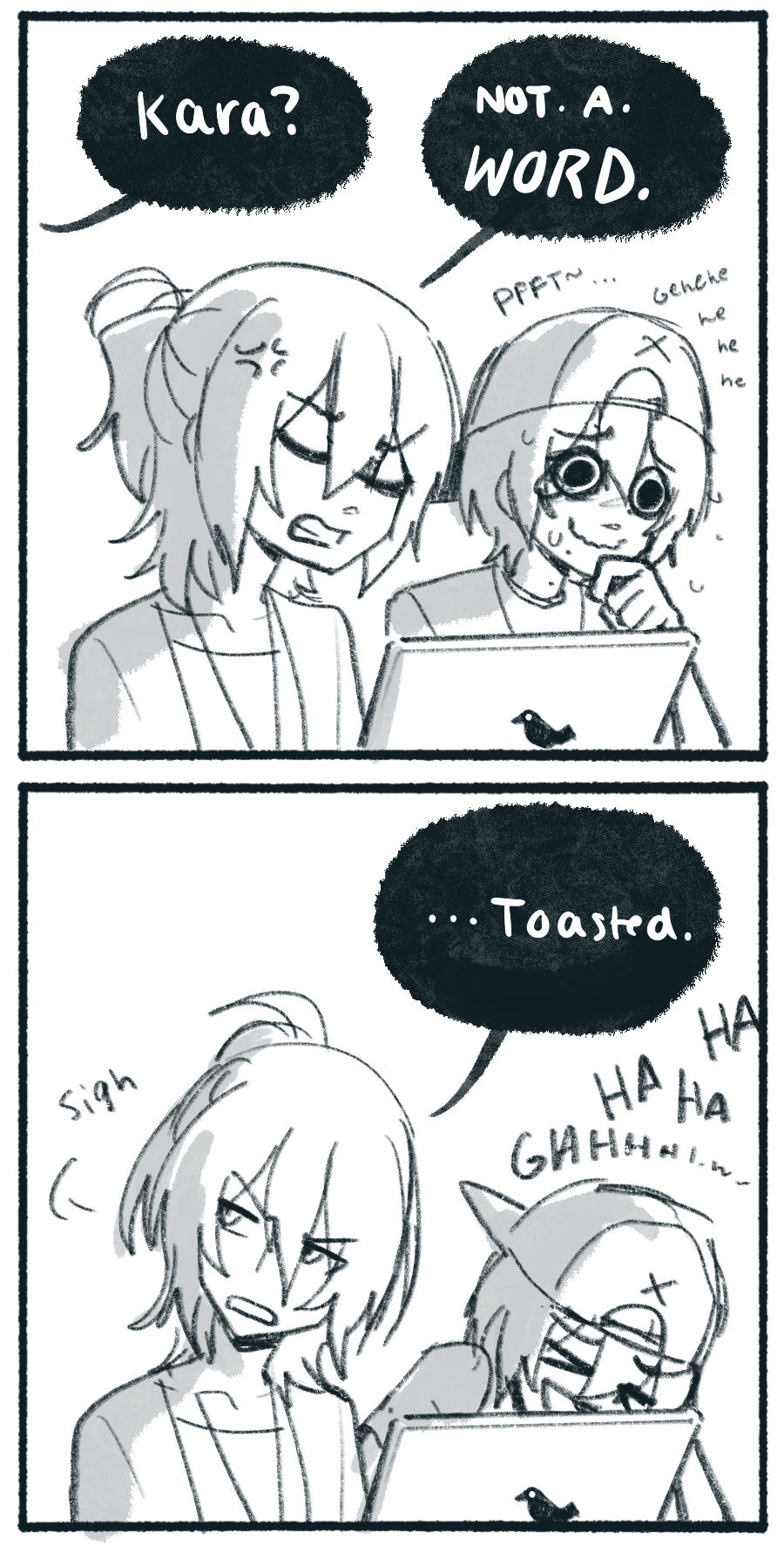 K: Not a word .-. J: *Is mentally 12*