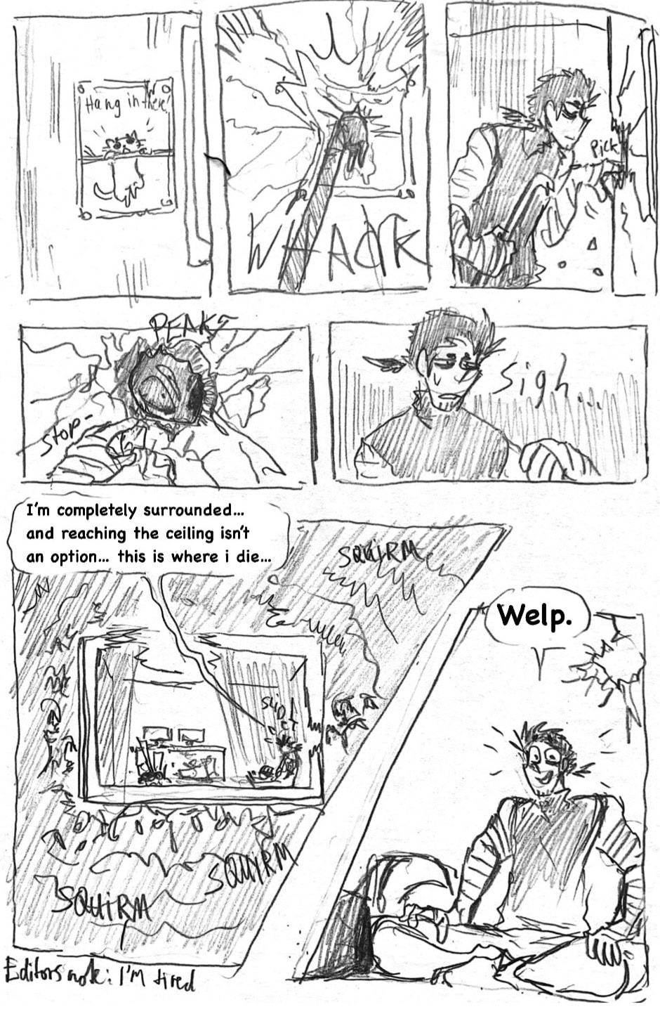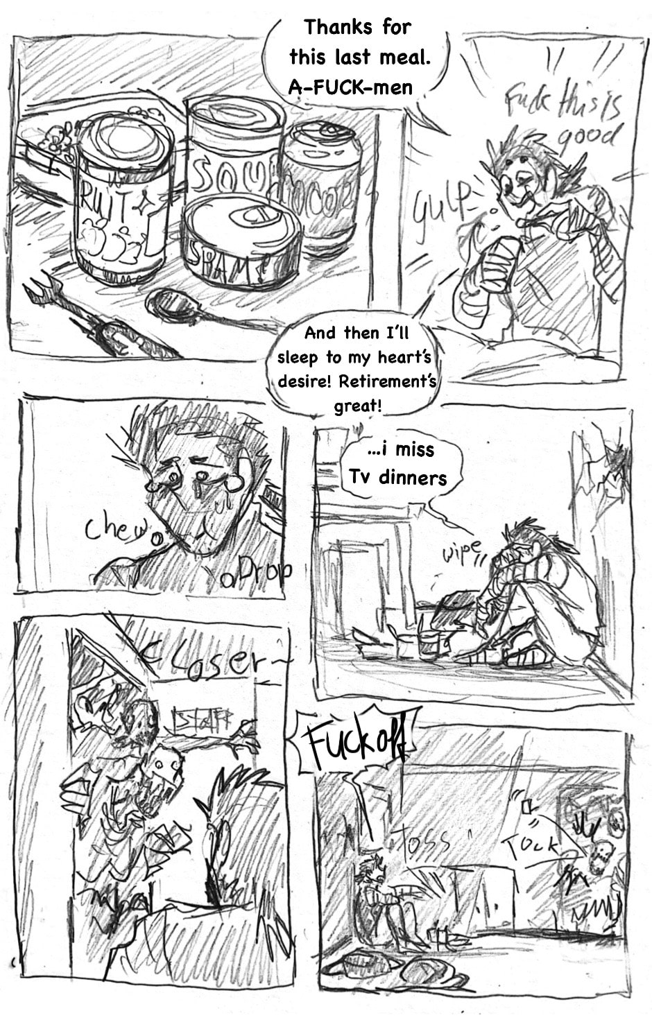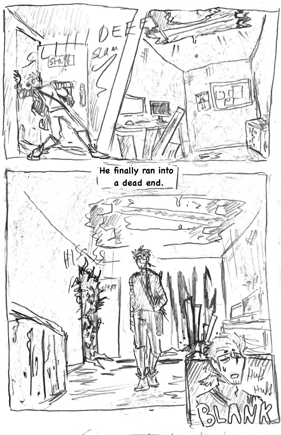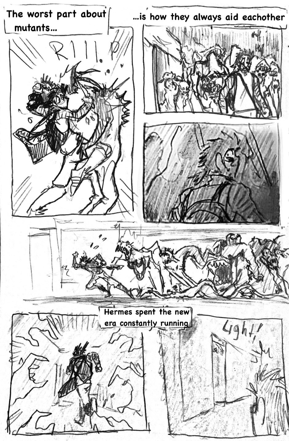 (this is such a shitpost comic lol) Three years ago, when the infection started, he came out of nowhere, wandering the empty streets, sleeping under the stars and pushing himself to inhuman distances just to help other living beings. Name's Hermes Carter. He's one of few brave (or insane) humans, that dare live in the wilderness among the undead and the mutated, constantly on the run from those gore-ish forces. Eventually, a dead end in a collapsed mall leaves him desperate. What now?