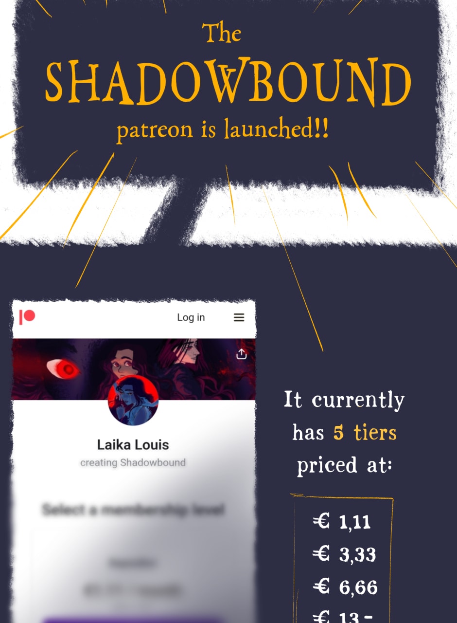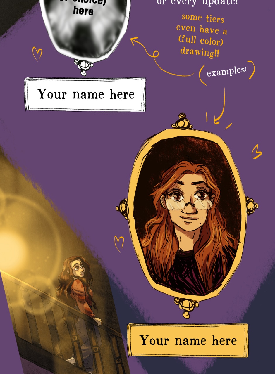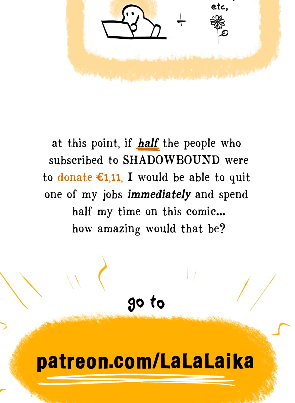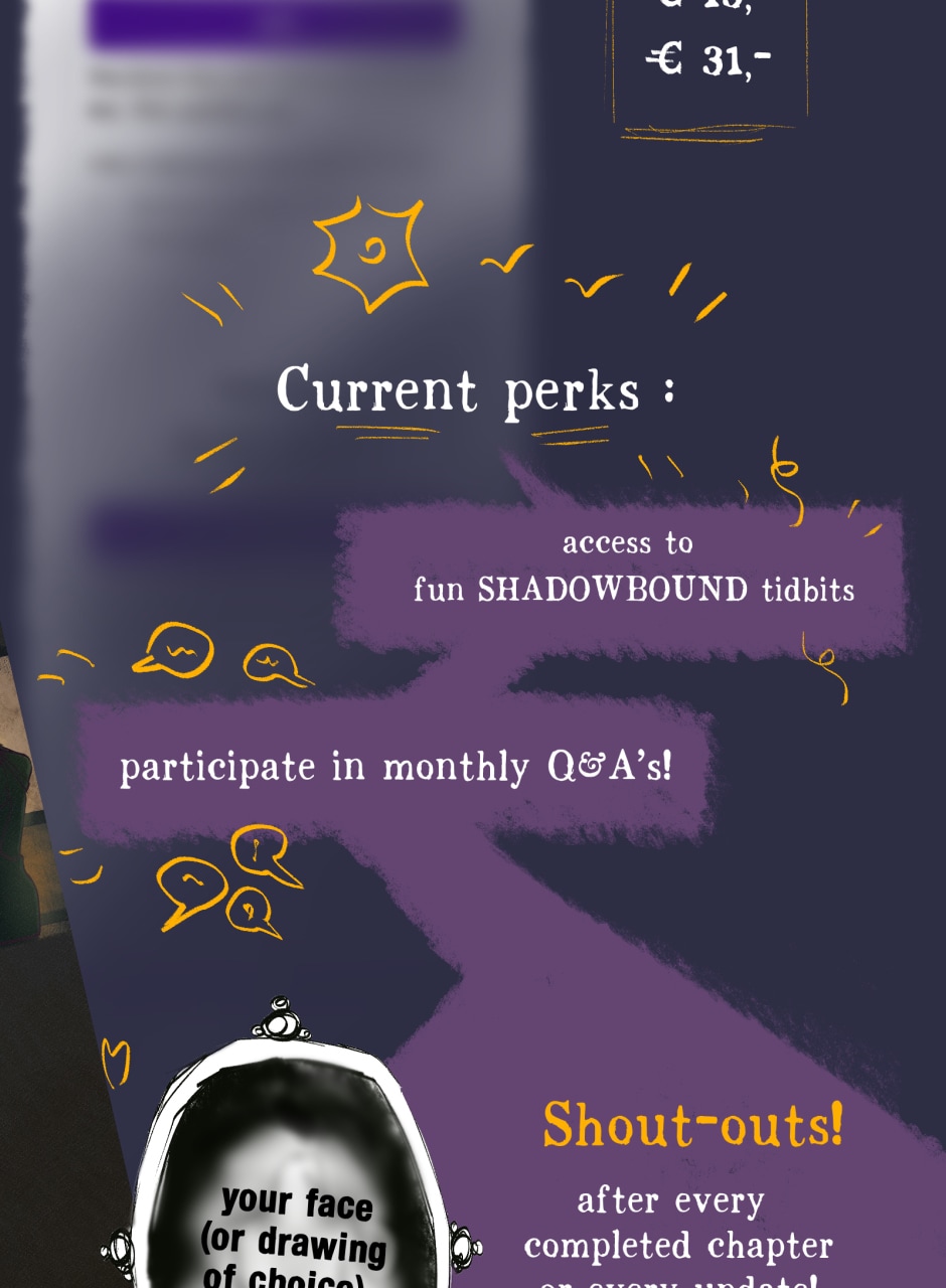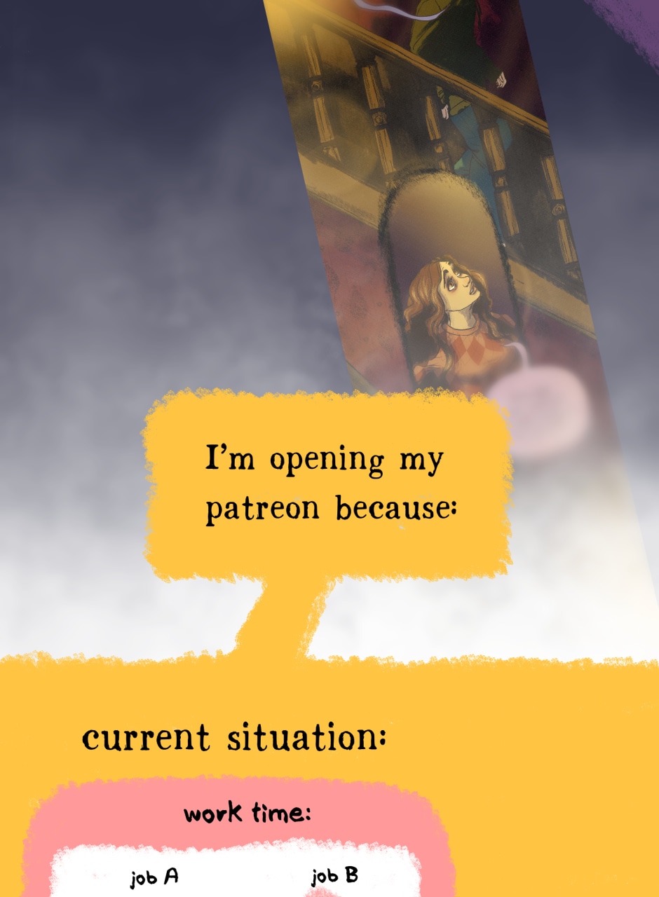 thanks to getting featured as a staff pick on webtoon my audience over there grew from about 80 to 1400+ in two weeks, which was WILD and now I can open a patreon ayy!! Also I held a q&a over there which i will post in between chapters here :)
