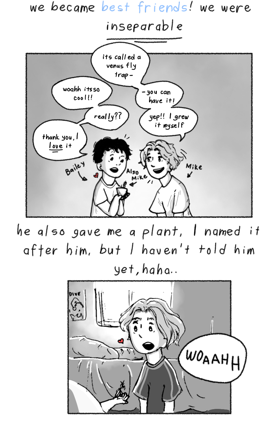 Bailey, a very angsty and overthinking boy who believes emotions are pointless to show, the truth is, he's just confused about his feelings, especially when its for something deeper than friendship then falls in love with someone who he never thought he'd catch feelings for, who might this person be and will he be able to figure things out..?
