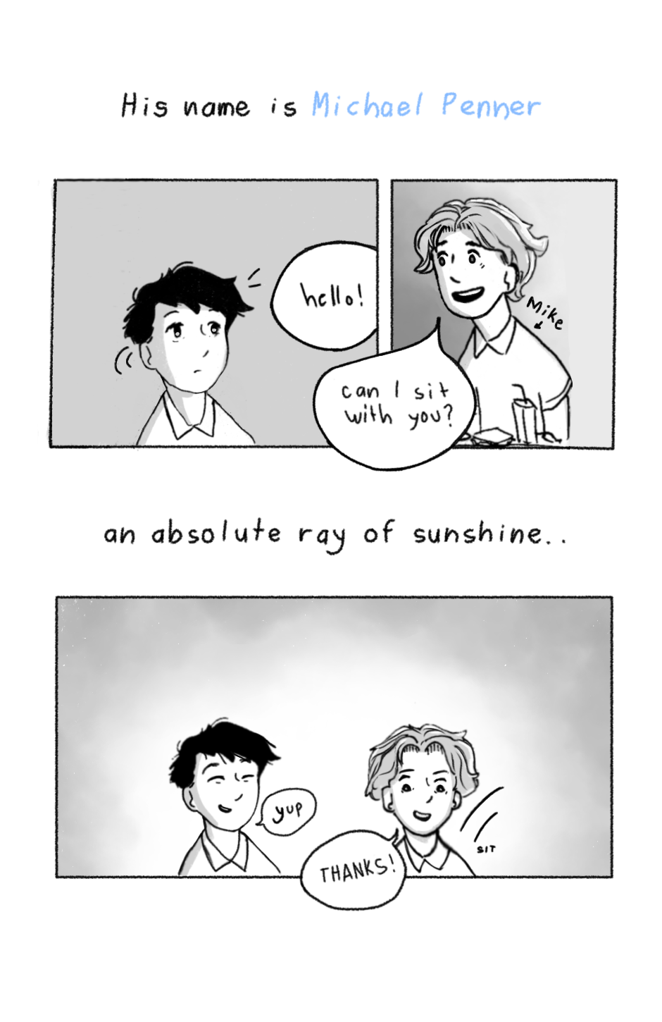 Content warnings: swearing, mental health issues, very mild violence, mentions of past bullying, and infrequent homophobia. Please note that there will be NO graphic or explicit imagery of any kind (e.g. violent, disturbing, or sexual) in this comic.