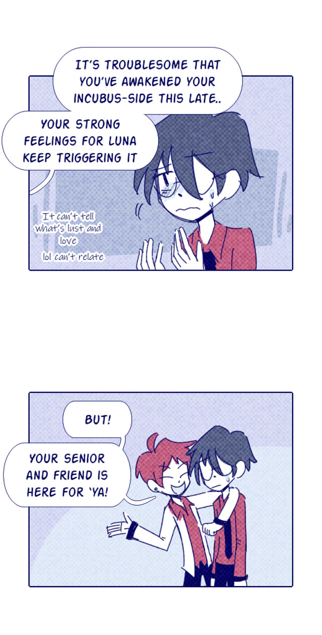 Luna, a human honor student from a strict and religious family finds a love letter in their club room. After she finds the sender, they become unlikely friends. Will her new friend bring more trouble to her school life? Or will they bring out the better sides of each other?