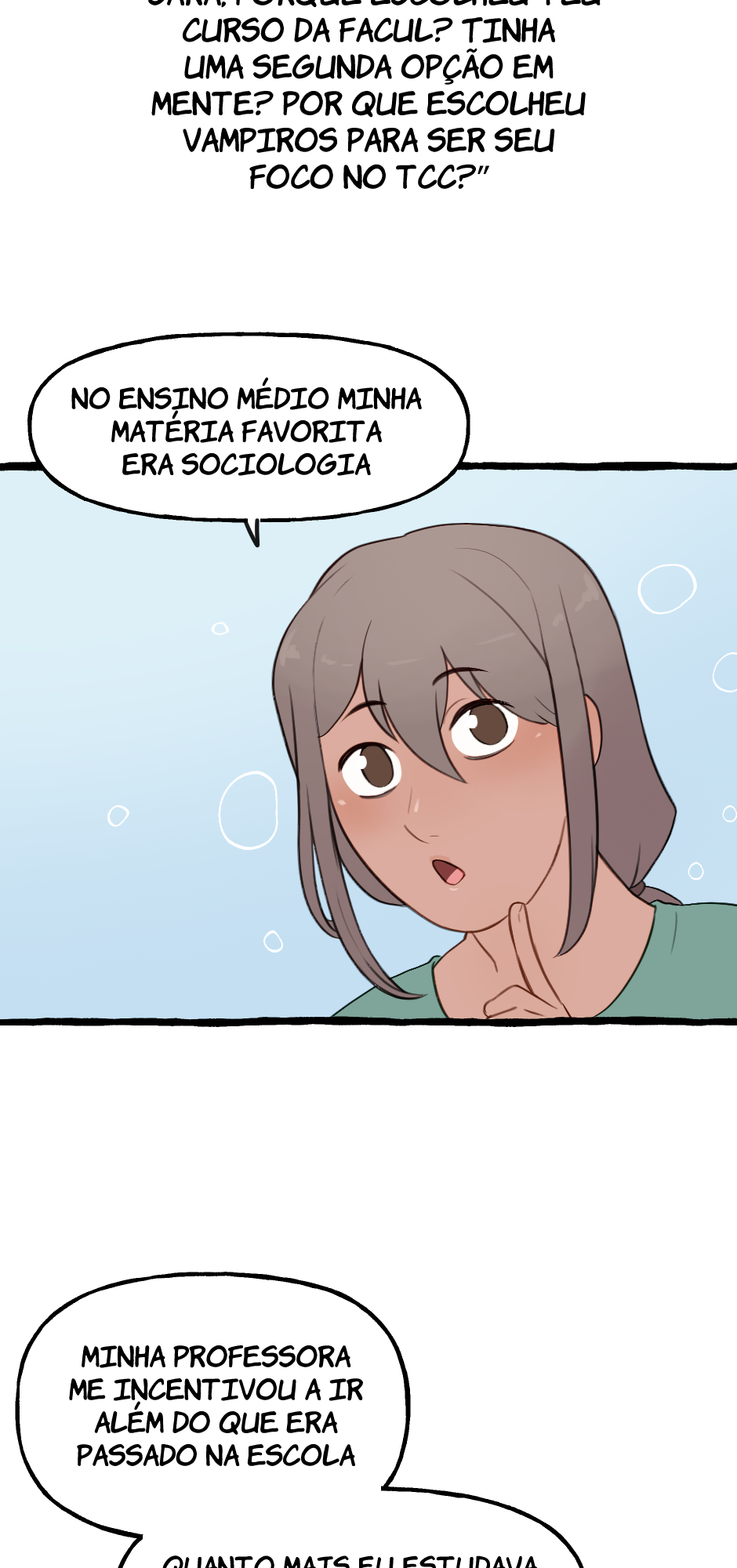 Em um mundo em que humanos e criaturas míticas vivem juntos, Sara, uma graduanda em Ciências Sociais precisa entrevistar vampiros para seu Trabalho de Conclusão de Curso. A jovem luta contra sua timidez e insegurança para dar continuidade a sua pesquisa e... talvez, acabar se apaixonando no meio do caminho?