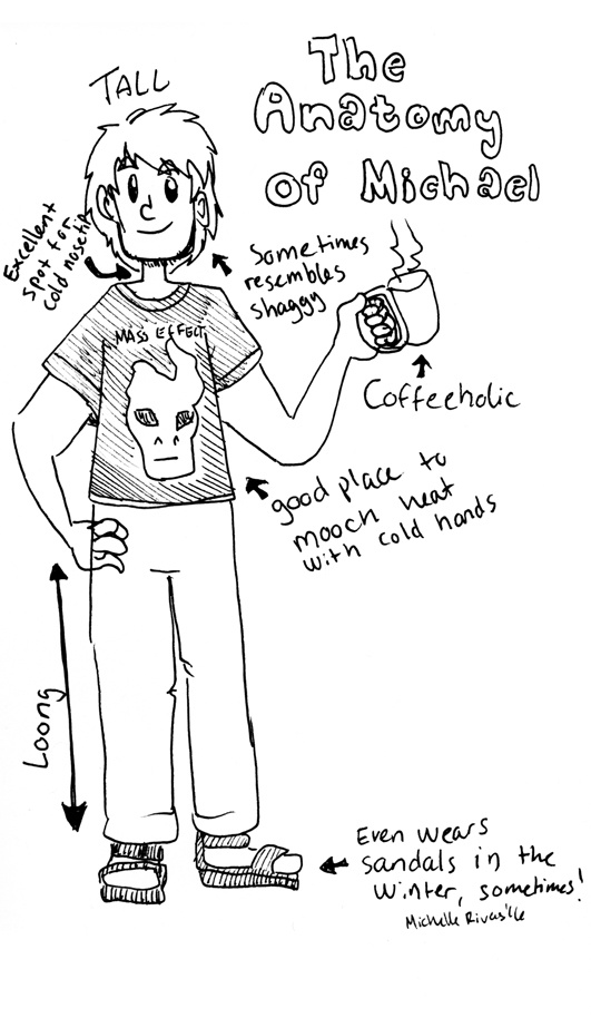 Tall, Coffeeholic and a living Heat Generator and a Lover of Puns. That's Michael, also sometimes known as The Boyfriend™. He is a university student like Anori, who in his free-time enjoys playing video-games, cuddling, training and drinking coffee.