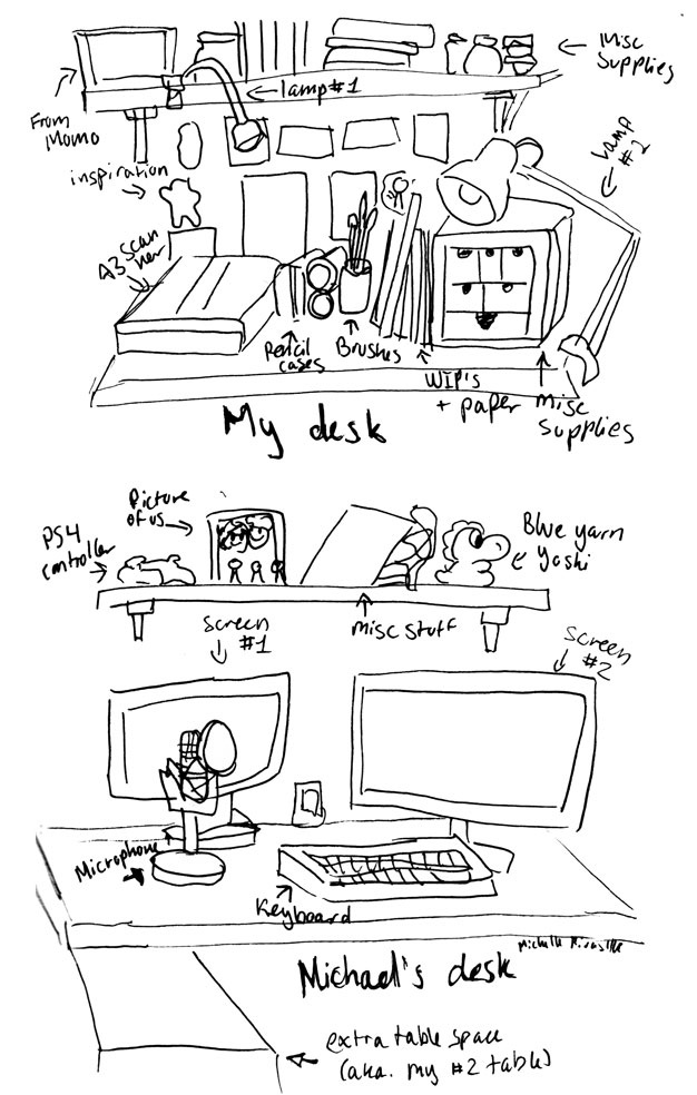 while I mostly use my desk to draw at, Michael's creative outlet is in playing video games and recording these sessions.