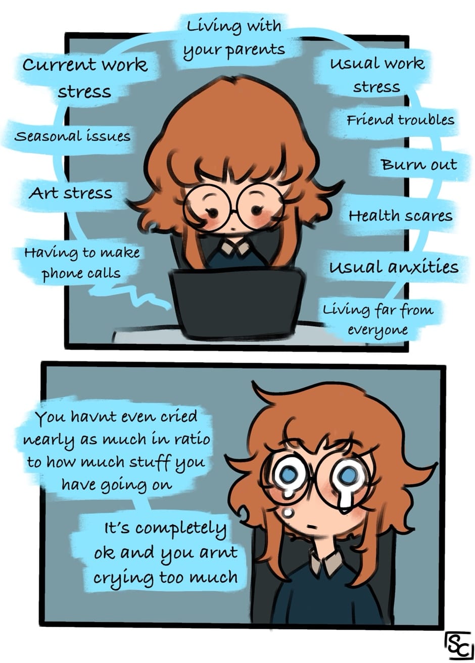Bless my partner for being so supportive and understanding of my faucets for eyes There’s a lot stacked up on my I can’t do much about other than take care of myself the best I can so it definitely gets frustrating