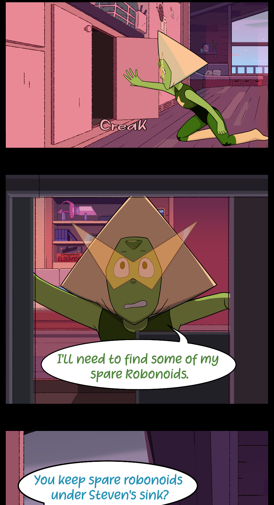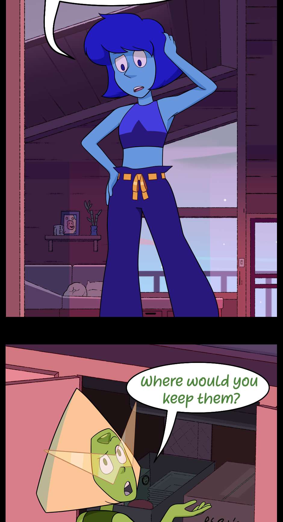 i mean yeah peridots got a point. what better place to put them than under your bestie's sink?? i dont see what lapis's problem is here??