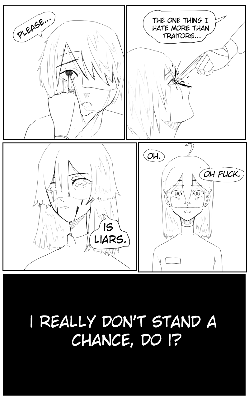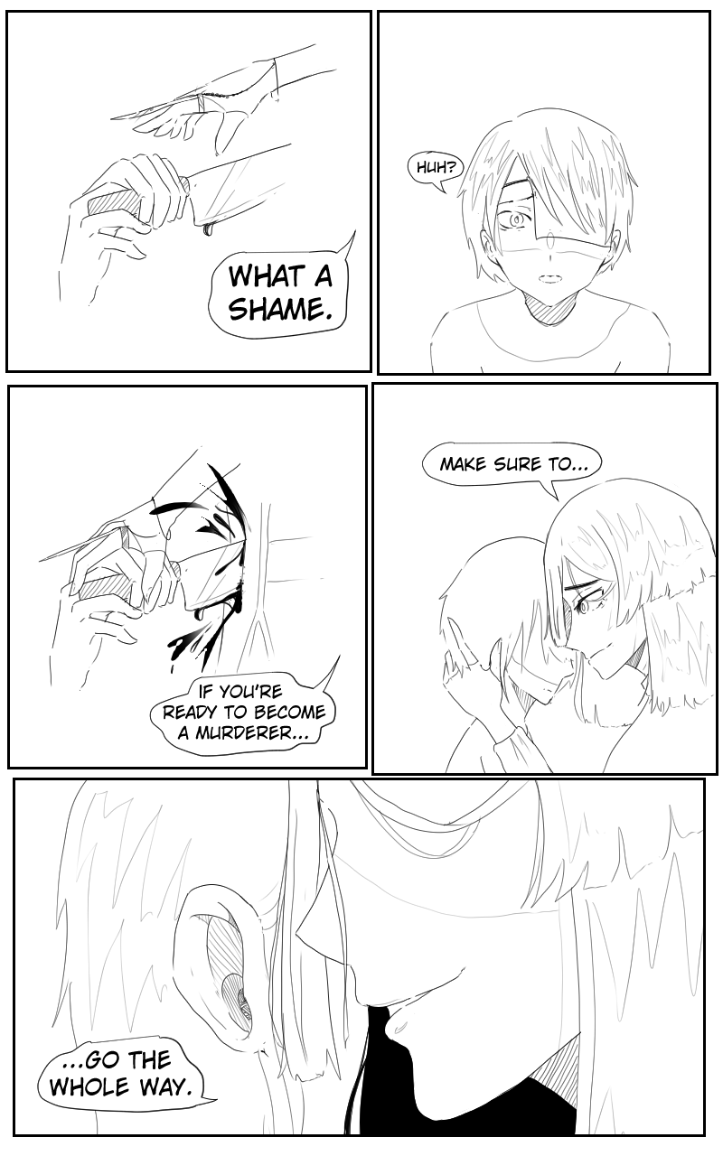 It's awesome seeing another chapter again after a while! Character detail and quality looks a lot better but I think a huge improvement would be the addition of background. This is because so far it's very empty and I feel like that would provide a better atmosphere. Keep up the great work!