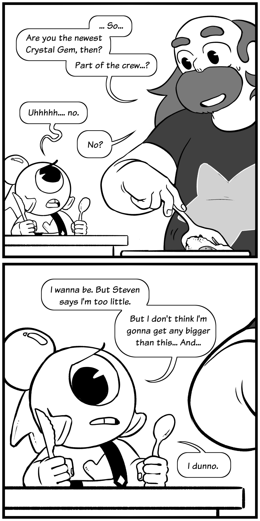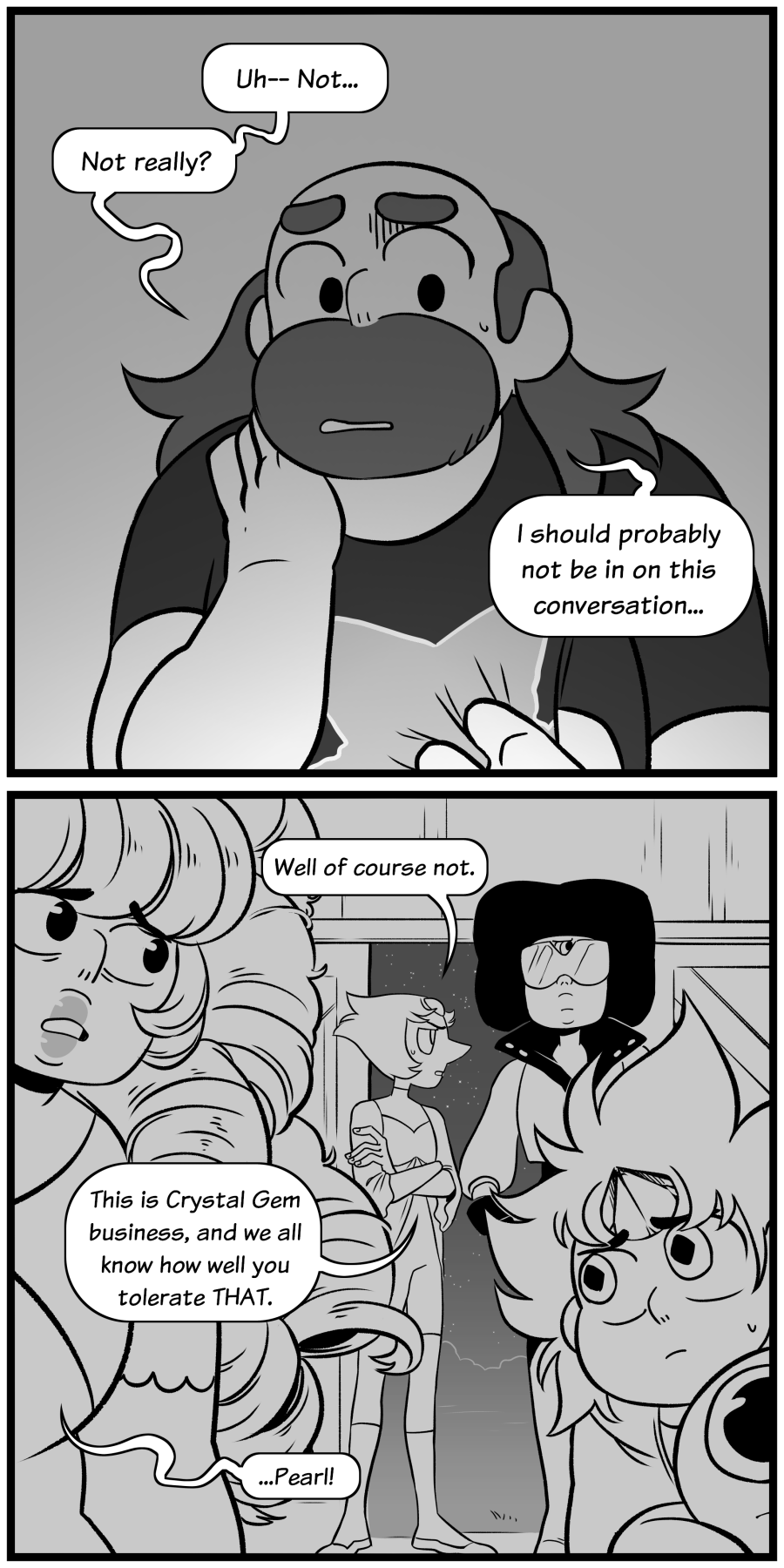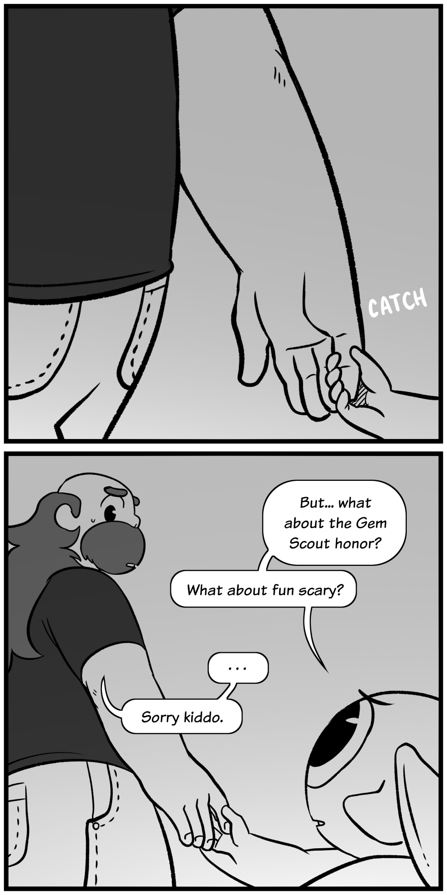 It was very sweet of Greg To encourage CG to become a Crystal Gem scout, although it sucks that he doesn't have the same courage as CG has because of what white diamond put him through