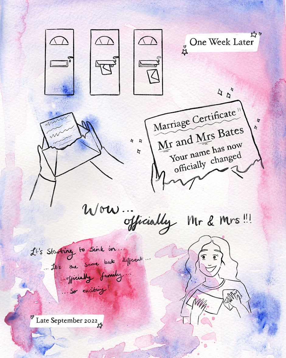 Entry 13; Saying Hello - To a new chapter, a new me, and a new us! Thank you all for following along, it's been an emotional 13 entries to reflect on the wedding as we close out the year - and to also capture the memories forever through my illustration practice. I hope you enjoyed it! All the best - Mia