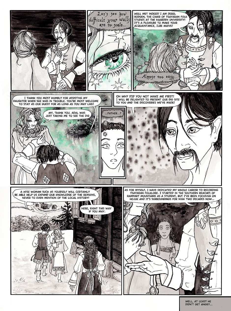 An expedition to remote mountains is going to be the experience young Adal needs to qualify for Haarden University. Unfortunately, her grandmother's old house from whence she and her father are commencing folkloristic studies hides old and alien secrets, the likes of which Adal has never even dreamed of. And what is that red stranger scurrying about in the shadows?