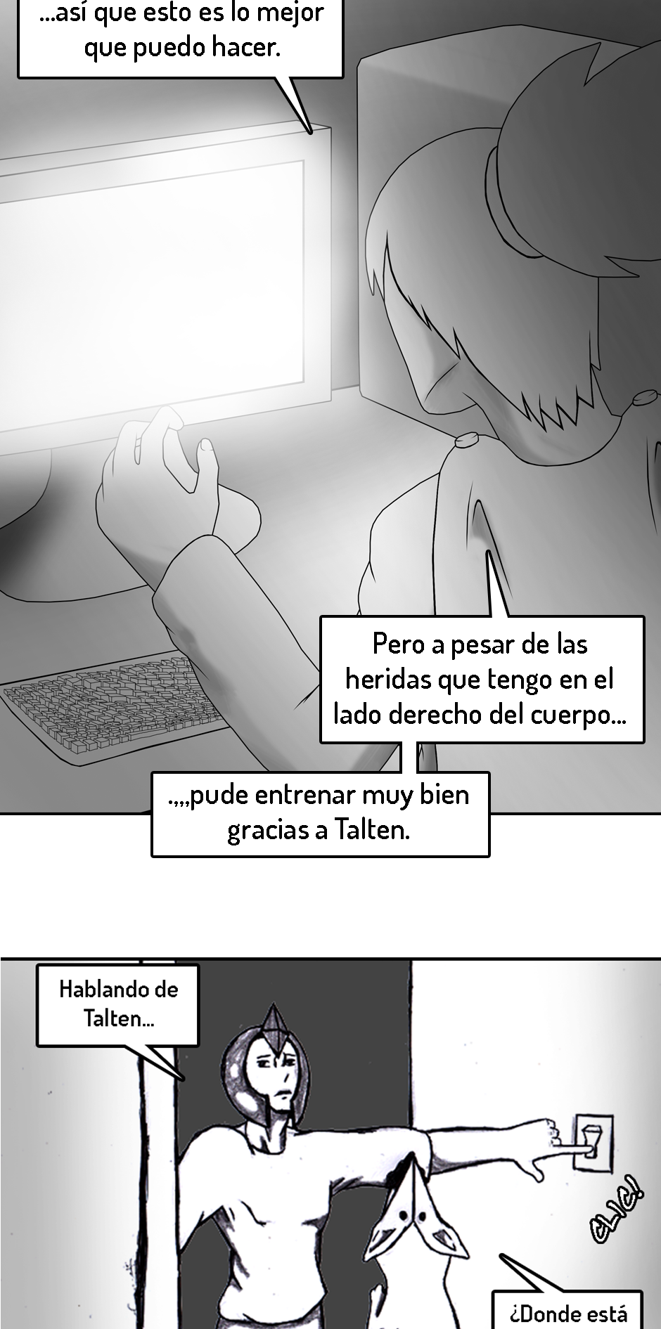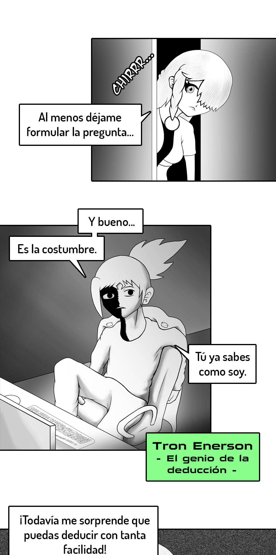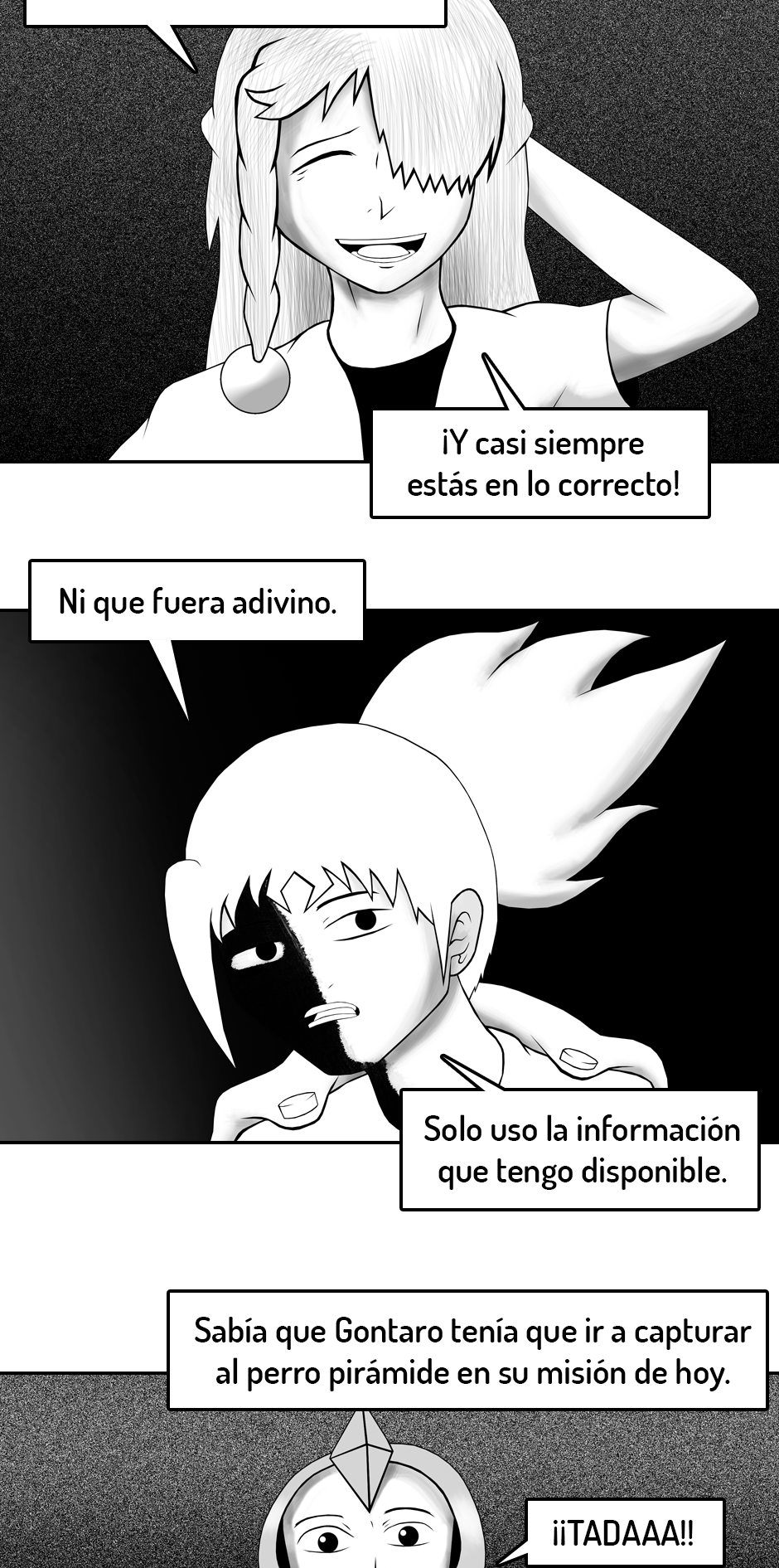 PD (3 años después de haber iniciado): Ya que este es y será mi primer y único comic de por vida, el inicio no está del todo pulido. Fui mejorando poco a poco. A medida que avances en la historia te vas a dar cuenta de como mejoré tanto mi dibujo como mi escritura.