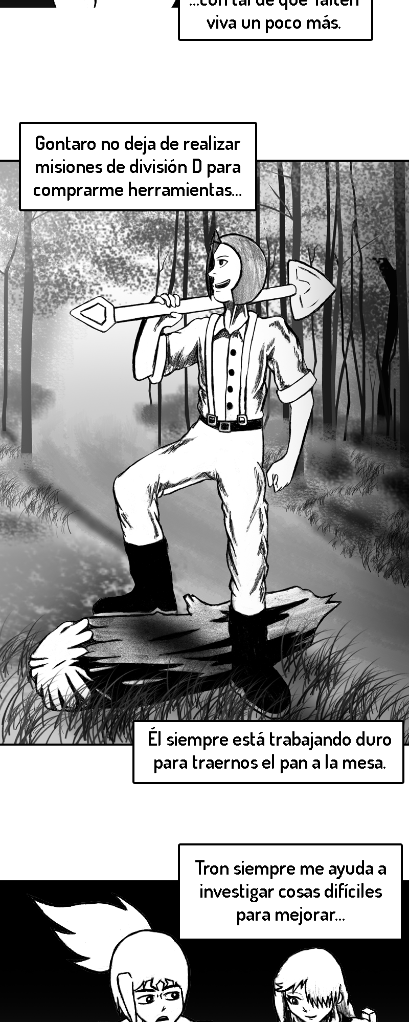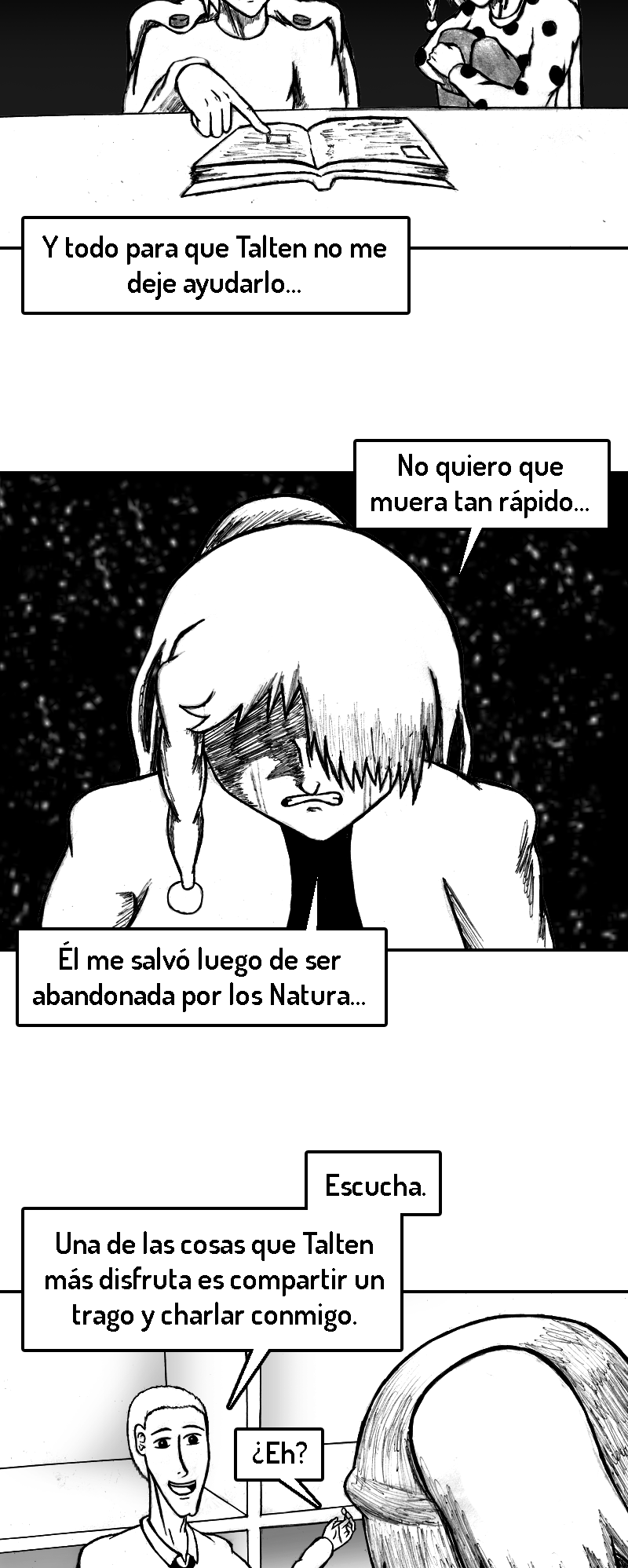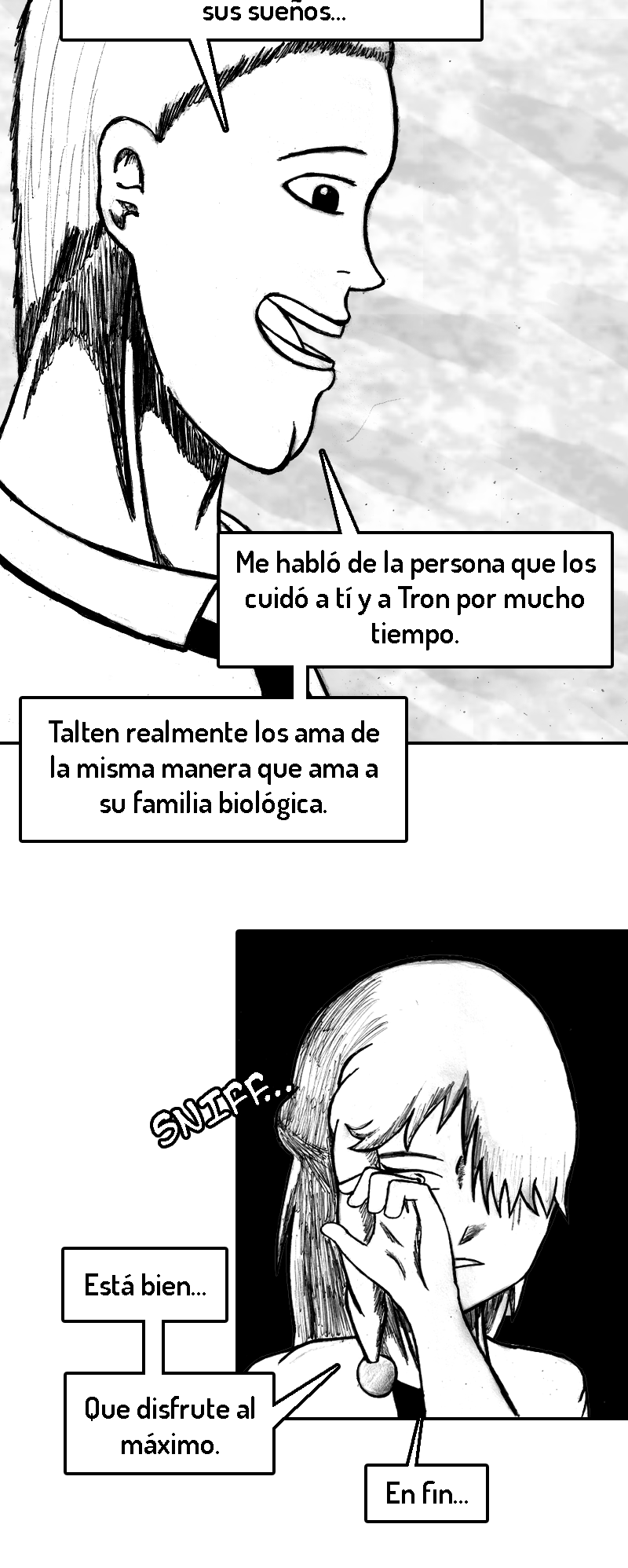 PD (3 años después de haber iniciado): Ya que este es y será mi primer y único comic de por vida, el inicio no está del todo pulido. Fui mejorando poco a poco. A medida que avances en la historia te vas a dar cuenta de como mejoré tanto mi dibujo como mi escritura.