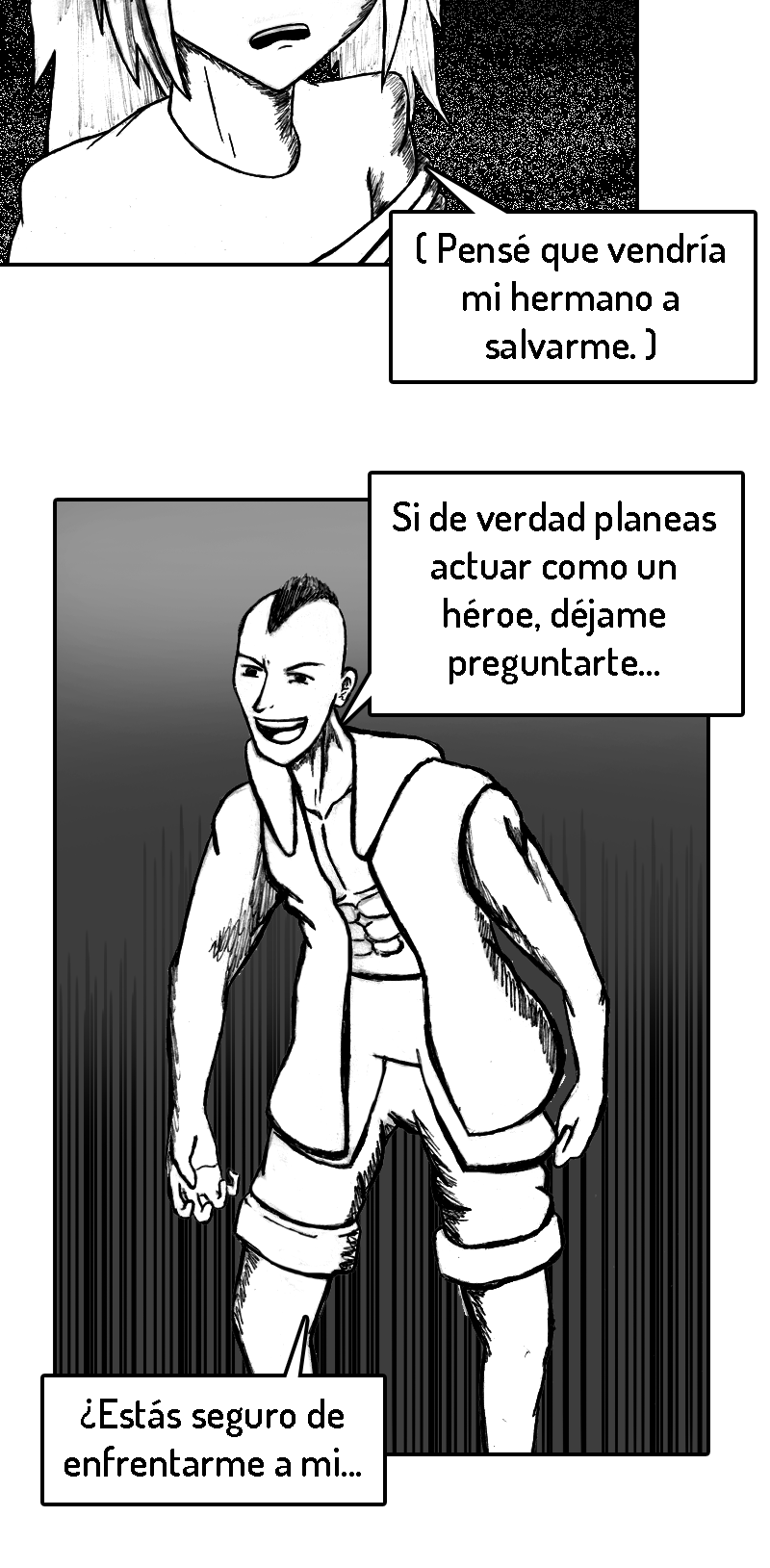 PD (3 años después de haber iniciado): Ya que este es y será mi primer y único comic de por vida, el inicio no está del todo pulido. Fui mejorando poco a poco. A medida que avances en la historia te vas a dar cuenta de como mejoré tanto mi dibujo como mi escritura.