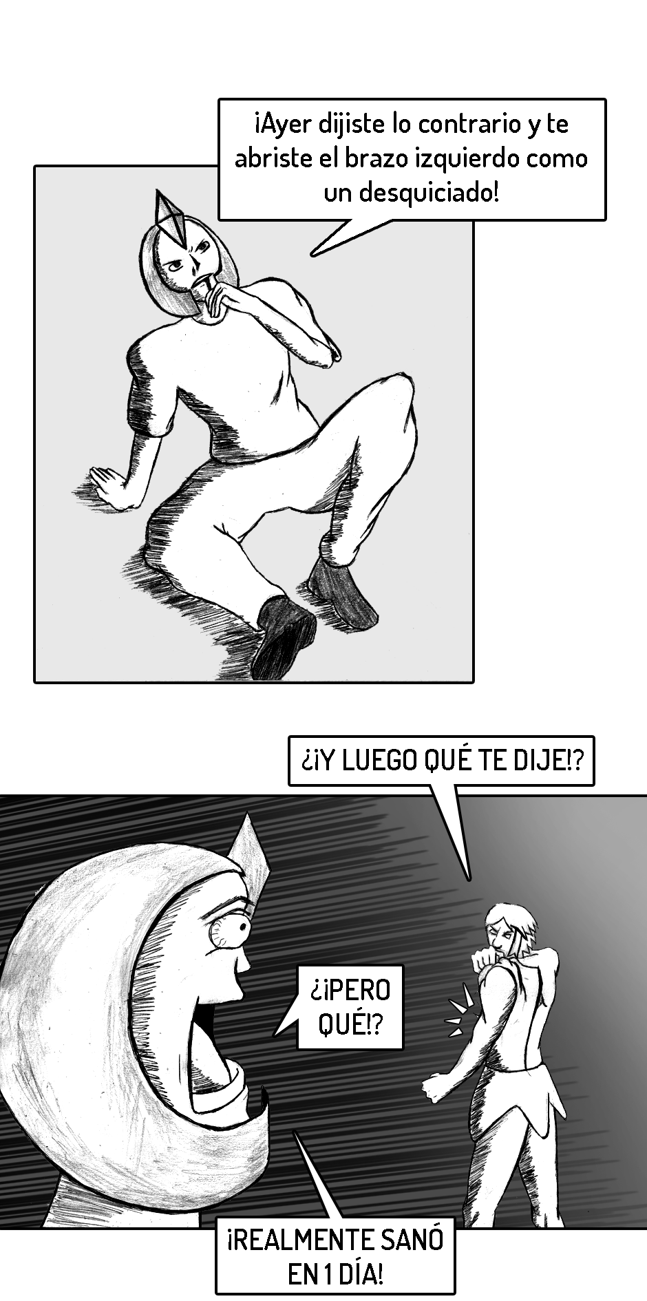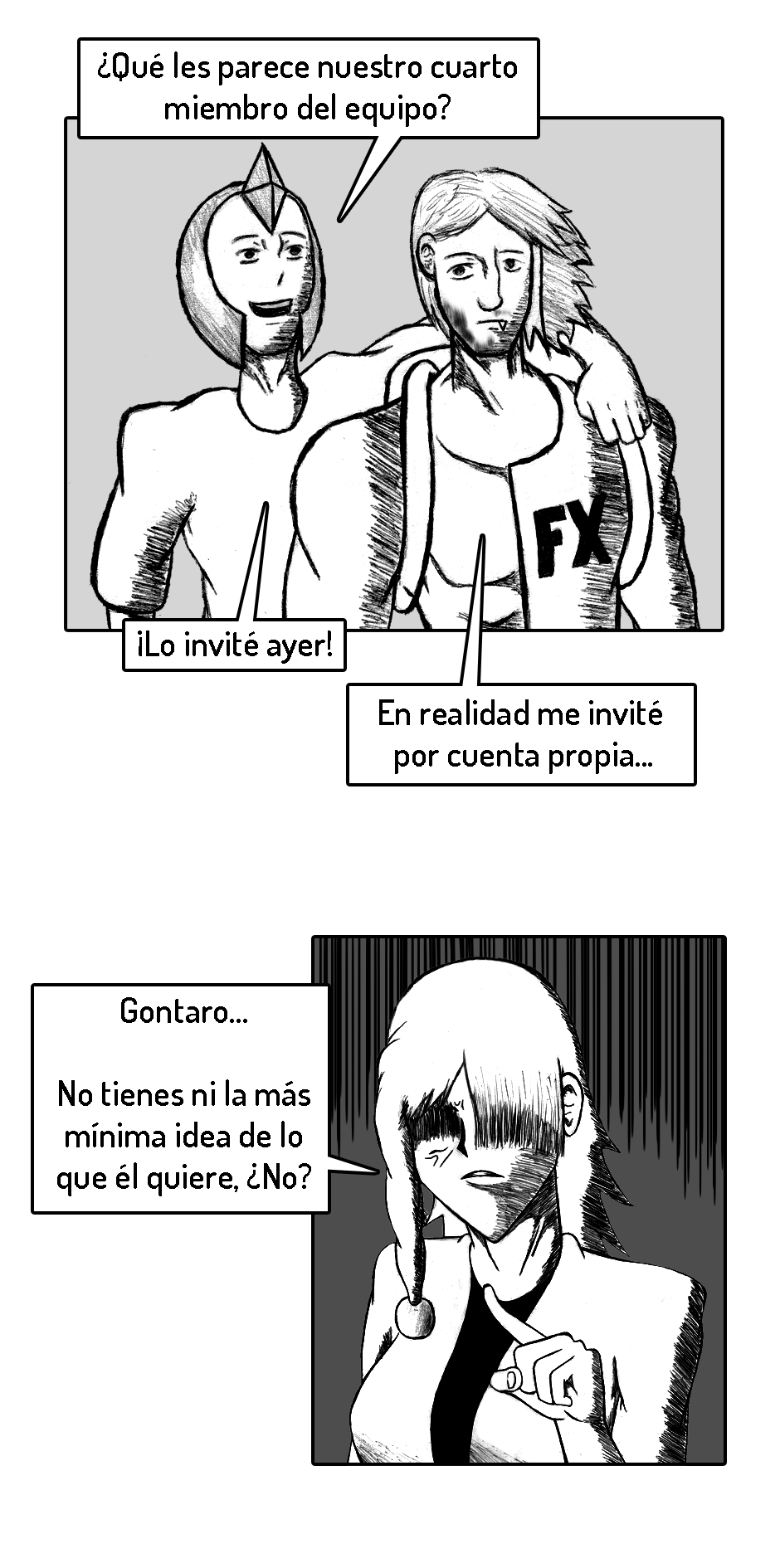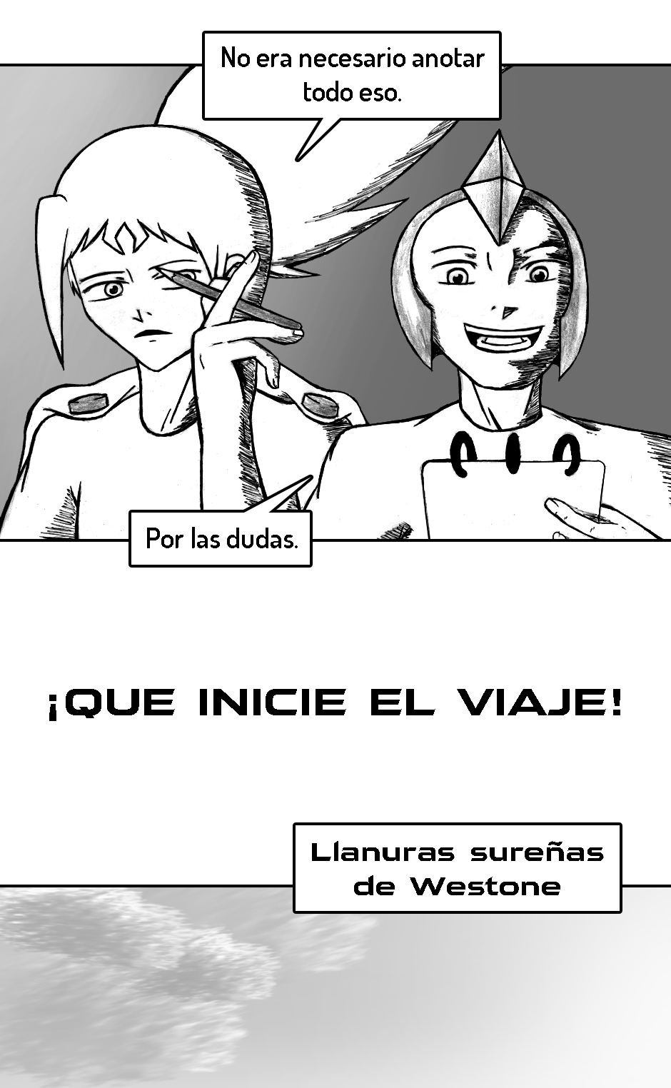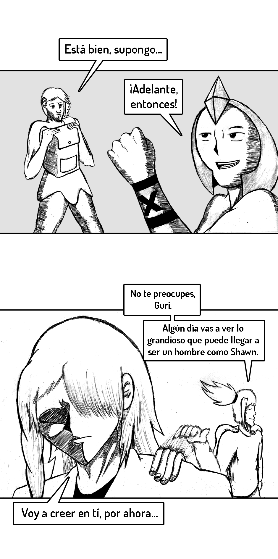 PD (3 años después de haber iniciado): Ya que este es y será mi primer y único comic de por vida, el inicio no está del todo pulido. Fui mejorando poco a poco. A medida que avances en la historia te vas a dar cuenta de como mejoré tanto mi dibujo como mi escritura.