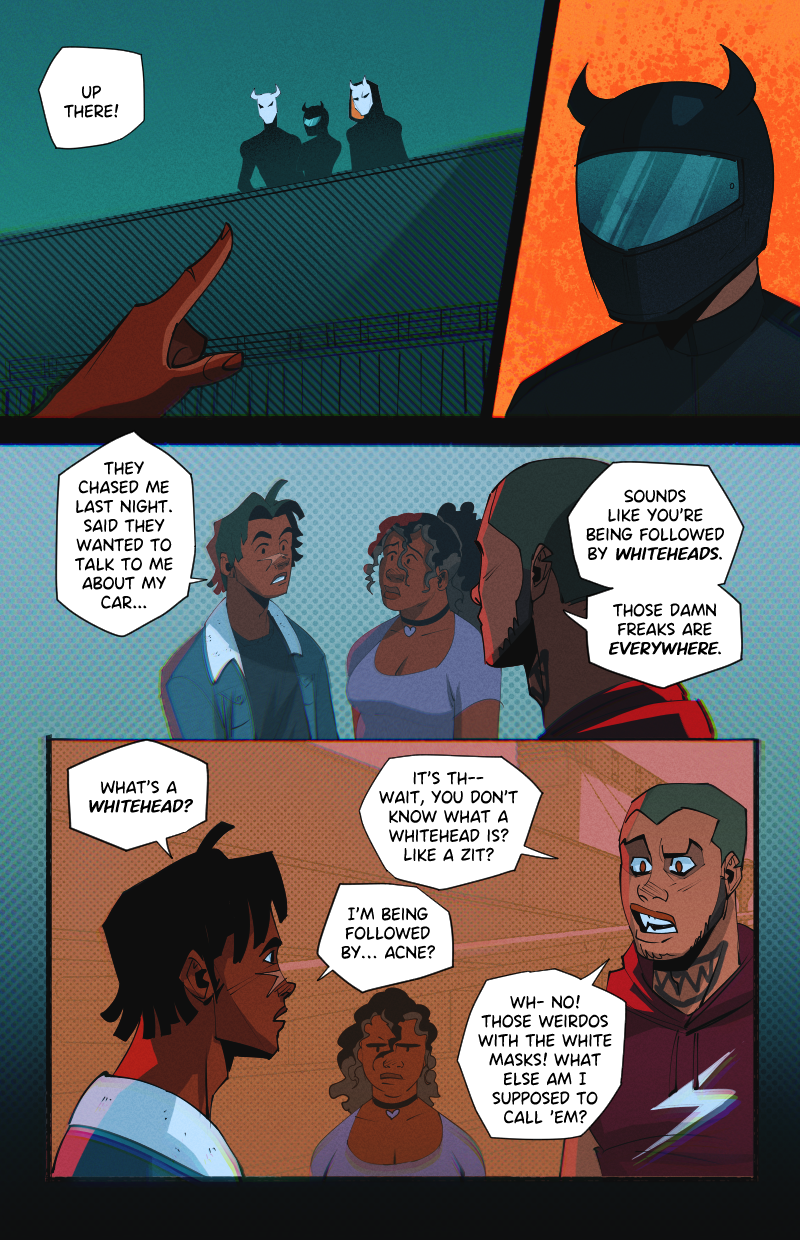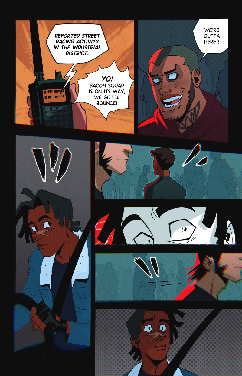 Ride or Die is an LGBTQ webcomic about two street racers who team up with a demon-possessed muscle car in the search for a missing woman, while being hunted by a deadly religious cult.