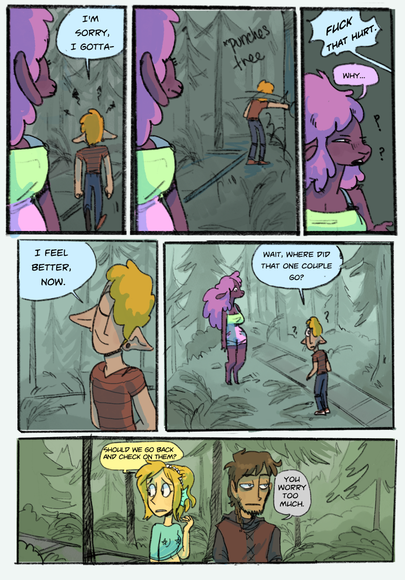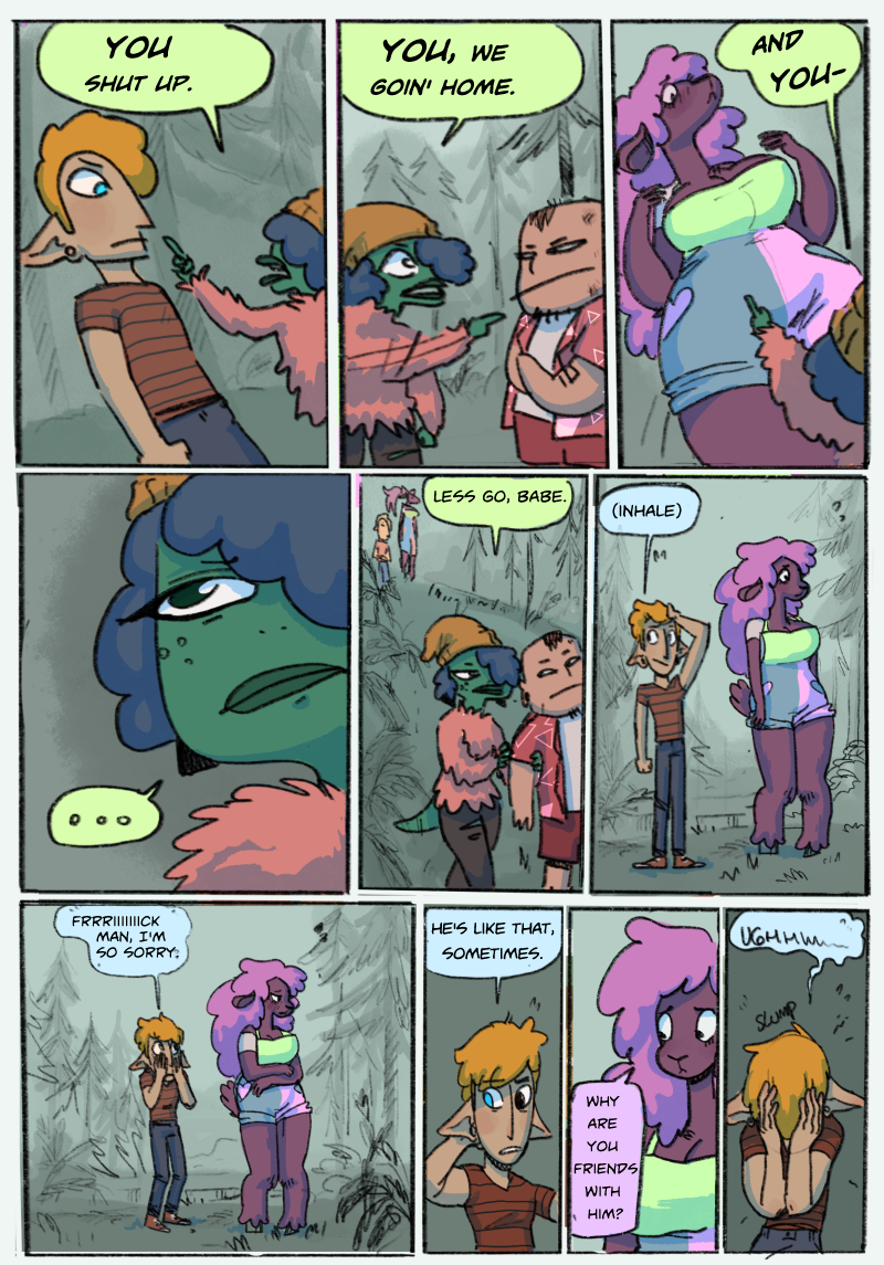 Otherwise, Chapter 2 will be here February of 2023. This silly little comic started out as a break-up project. It kept me busy and my mind distracted between relationships so I was pumping out four pages a day! Never thought I would share it with the world but it went from being scratchy, to colored, put online, and then printed and sold at conventions!