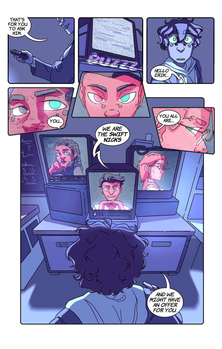Took me a while to find a decent composition I was satisfied with, but here we are. Finally, some new buddies! I can already hear myself screaming why the heck I decided to add the buzz video effect in the next pages, this shit is takes 4 layers to do.
