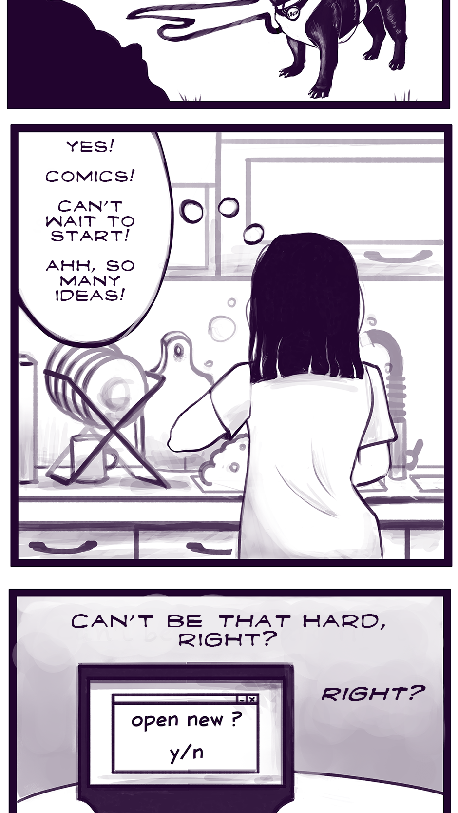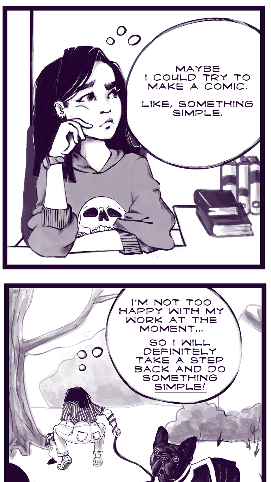 Quick little bitesize comics, created based on my life, observations, situations, things that make me laugh, or things that scare me. Featuring my lovely French bulldog - Krum and my amazing partner, and many more.