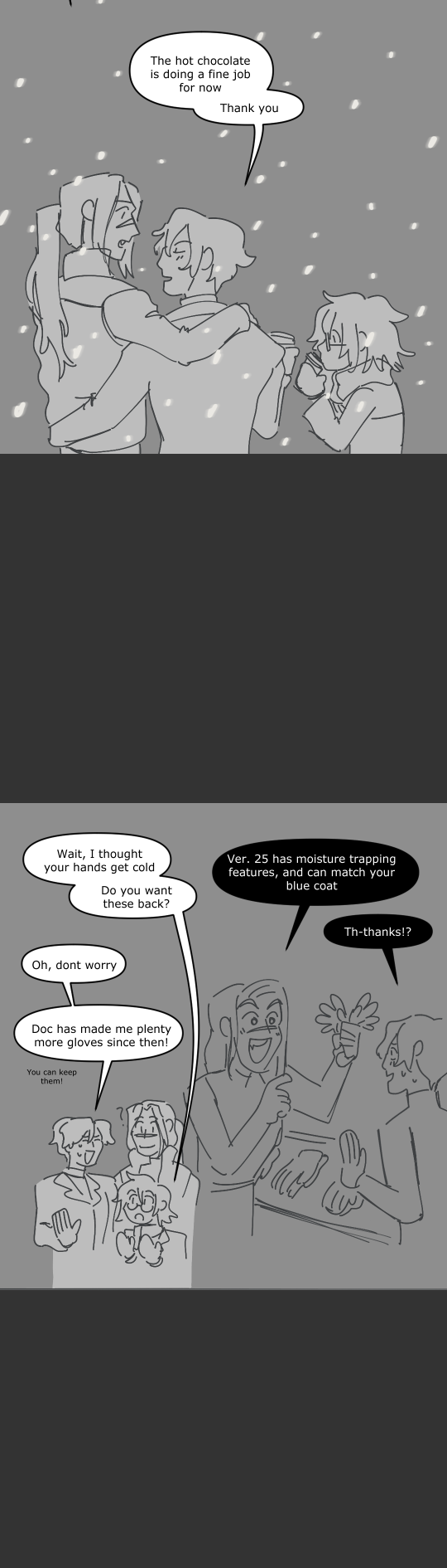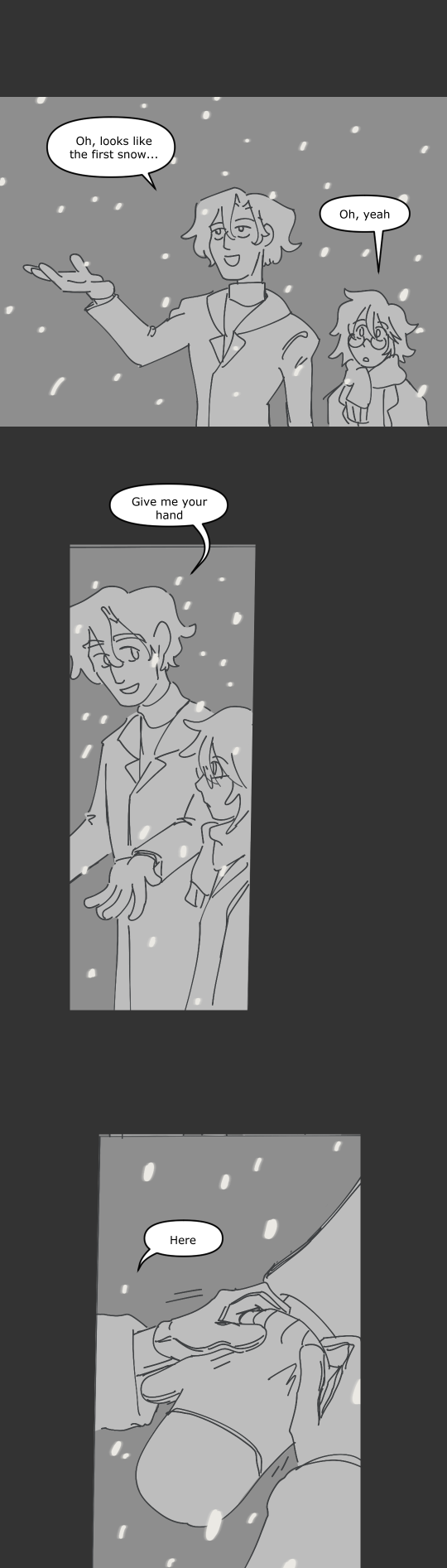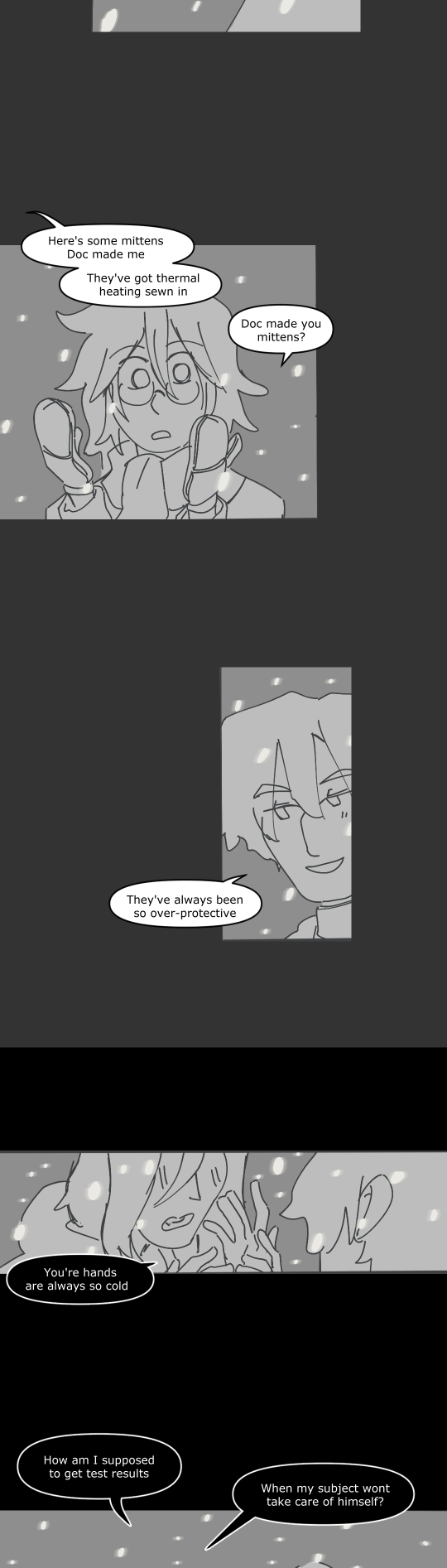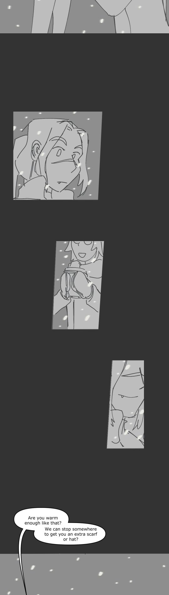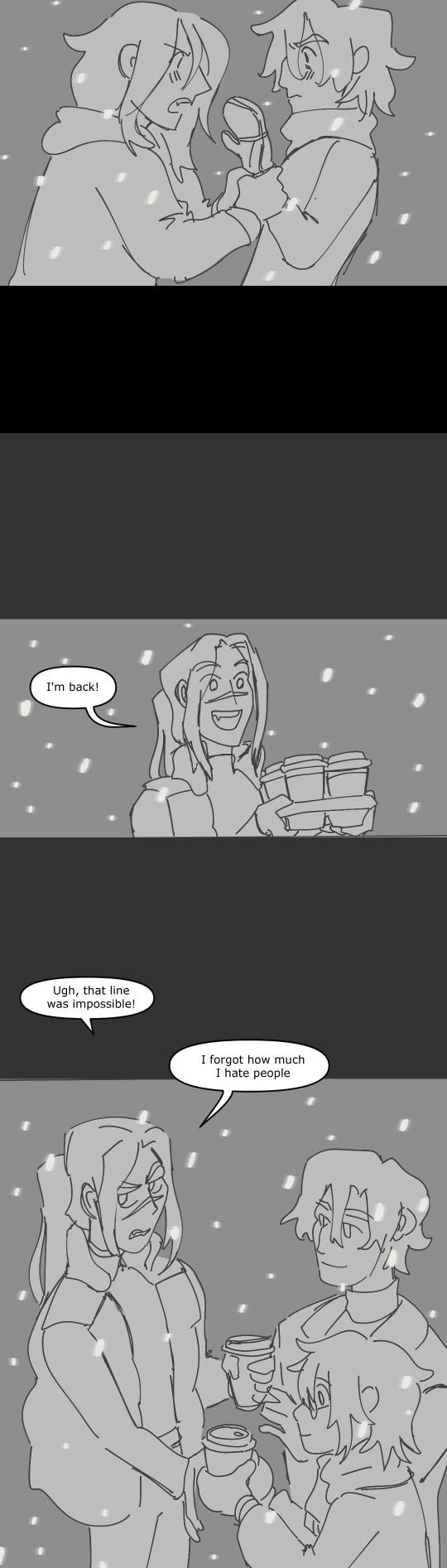 Here's a quick style test from 2022 when I was trying to figure out how my pages process would be, and a very quick test in procreate on a snowy night. I really hate snow, so it was comforting to try and make something sweet about it.