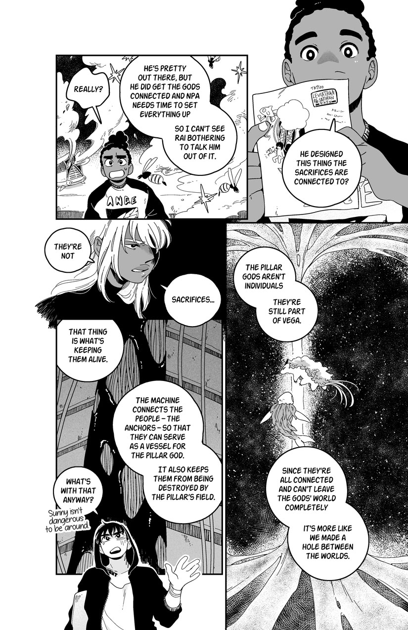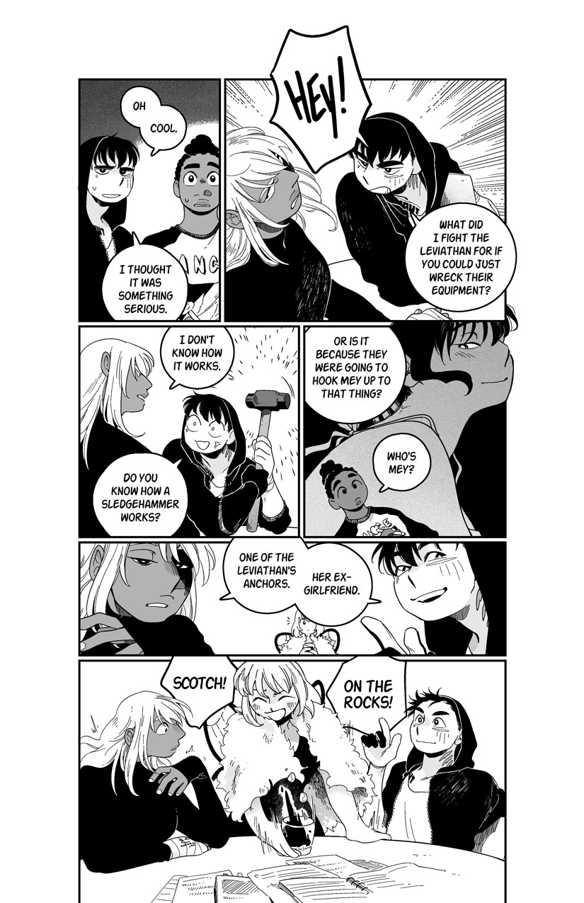 Officer Mykita Merrigo was last seen at an underground fight with a strange tattoo on her arm and overeager police secretary Coda is determined to find her, even if he has to do it alone... even if he has to do it with Liren, a reckless fighter who plays life like a video game. Coda's first case might be more than he can handle, with makeshift robots, vengeful gods, digital dreams, and the mysterious Leviathan of the Southern Rain standing between him and the answers.