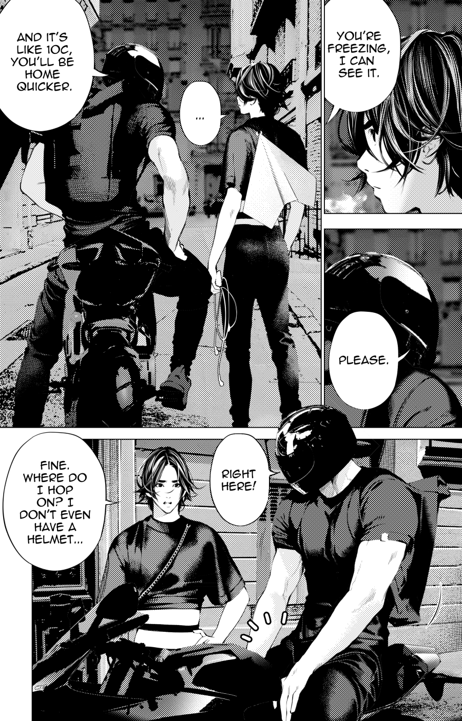 Fun fact, Tera asks the Boy to sit on the front for 2 reasons: so he doesn't fall down (lol) and because he can wrap himself around the Boy to keep him a little warm (is that good english??).
