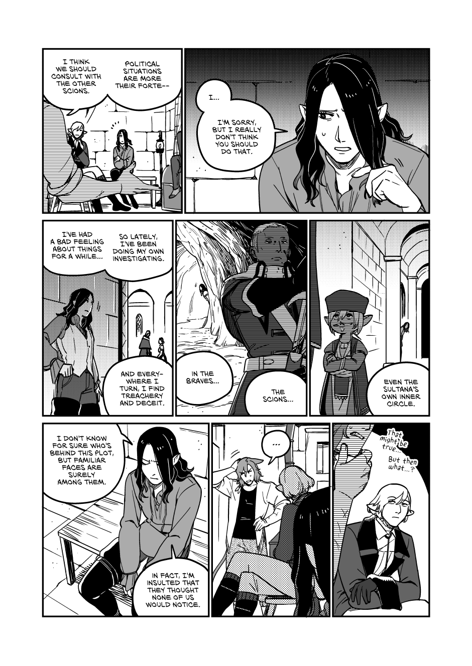 That is until the main four started concocting their own plan and when they started actually engaging with the plot as active player it throws the reader for a loop and instils a new kind of dread in them, the dread of not knowing how this is going to go but knowing their plan hast to end badly, it creates a dramatic irony where the reader know that this plan has to go wrong somewhere but now they have no idea how. This uncertainty dragges the reader back into being invested in the main plot instead of just the main characters so when things start going to shit in new but familiar ways it creates a catharsis that I didn't expect but absolutely loved.