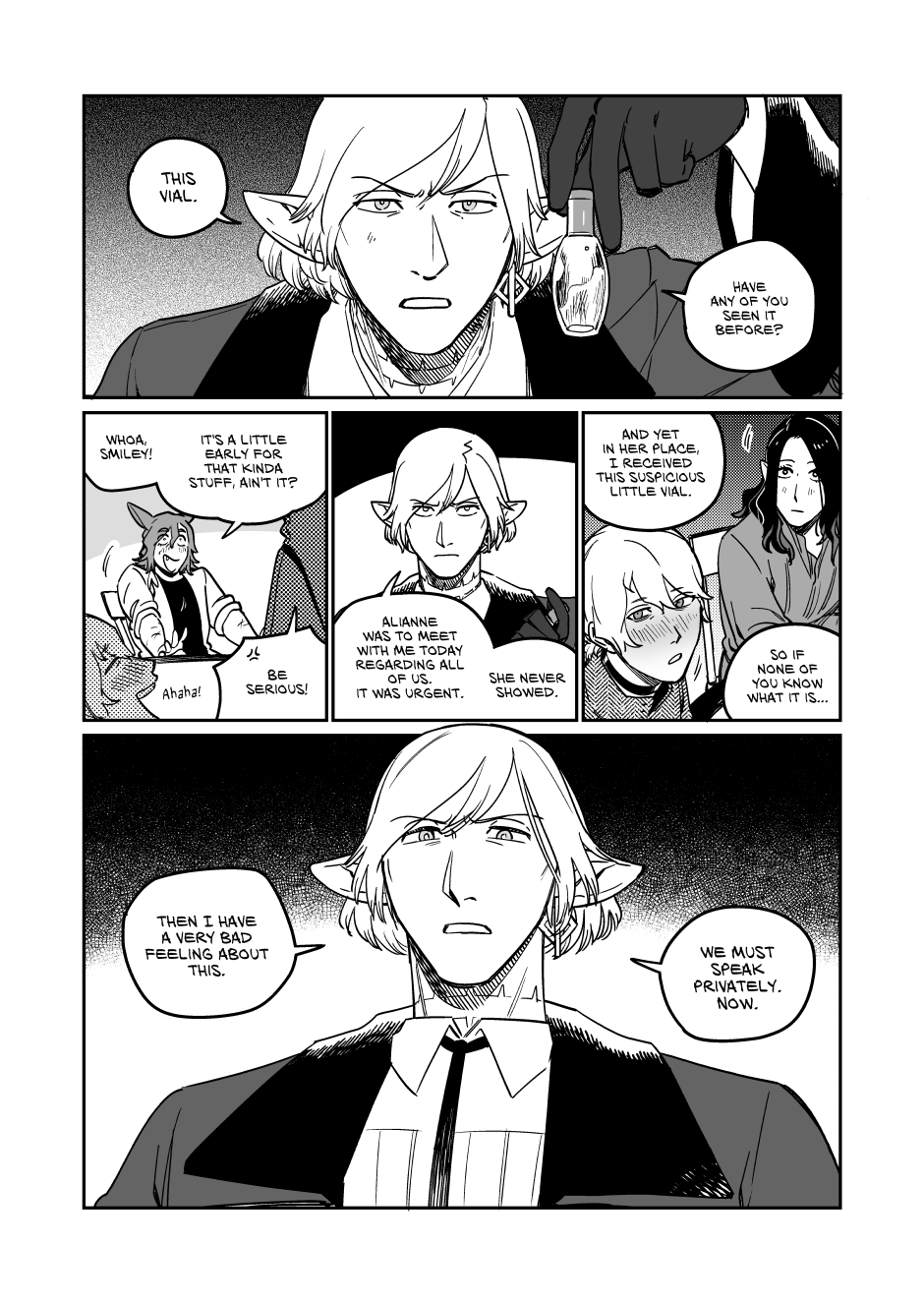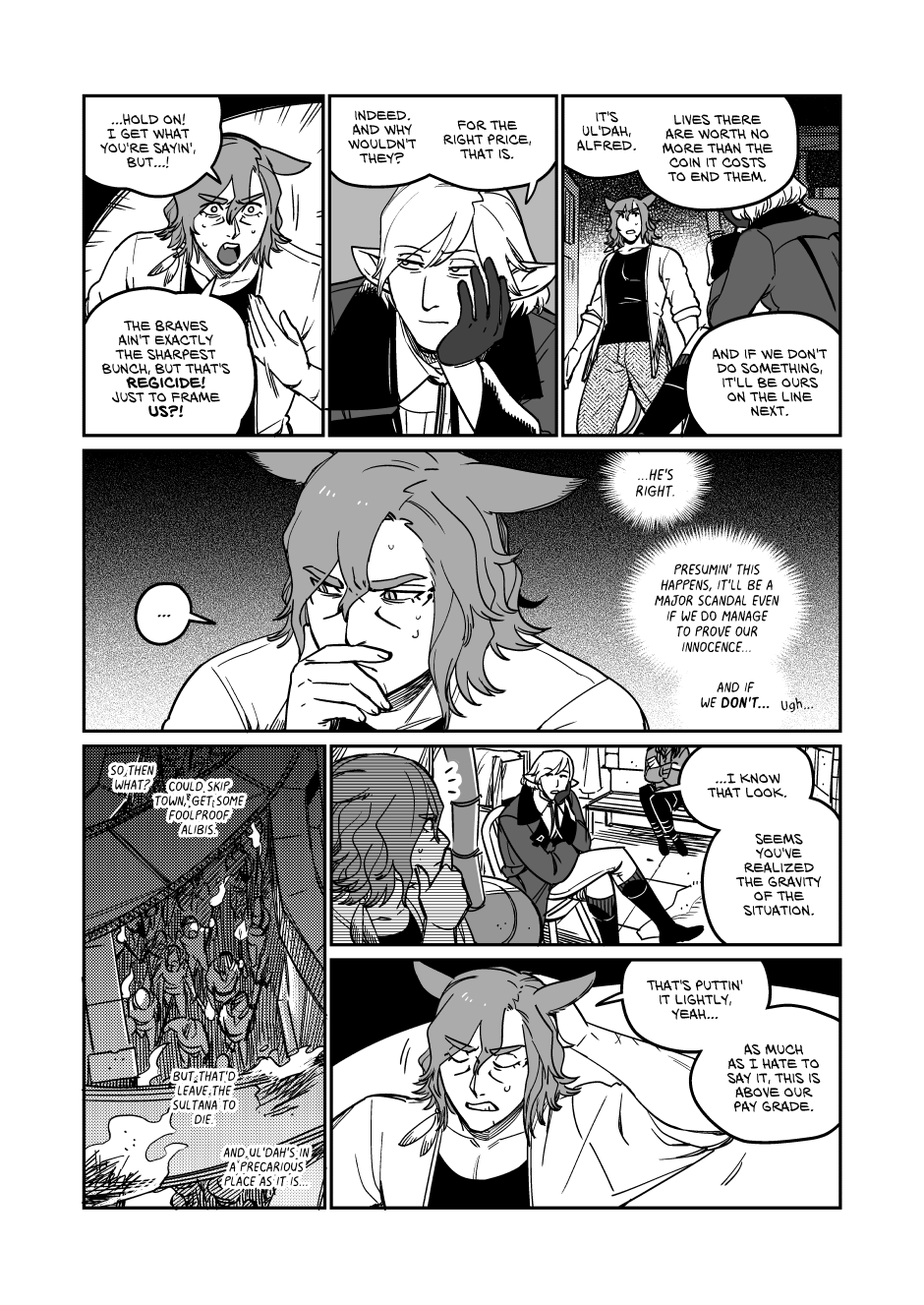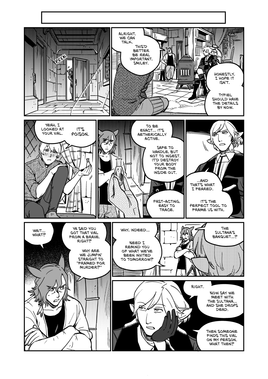 1) subverting expectations: Up to this point the main plot since Alfred, Smiley, and Tyfel has largely followed the main plot with very minor changes, so much so that major story events are completely skipped over with usually only a few references, instead the plot has focused on developing and getting the main quartet with the overarching being just an assumed background feature. This has created an assumption for the reader that the main plot would be an unshakeable monolith that would always follow the exact beats of the game. So when anyone saw the warning in the beginning we all thought we knew what was going to happen, the only uncertainty was how the main four would react to it.