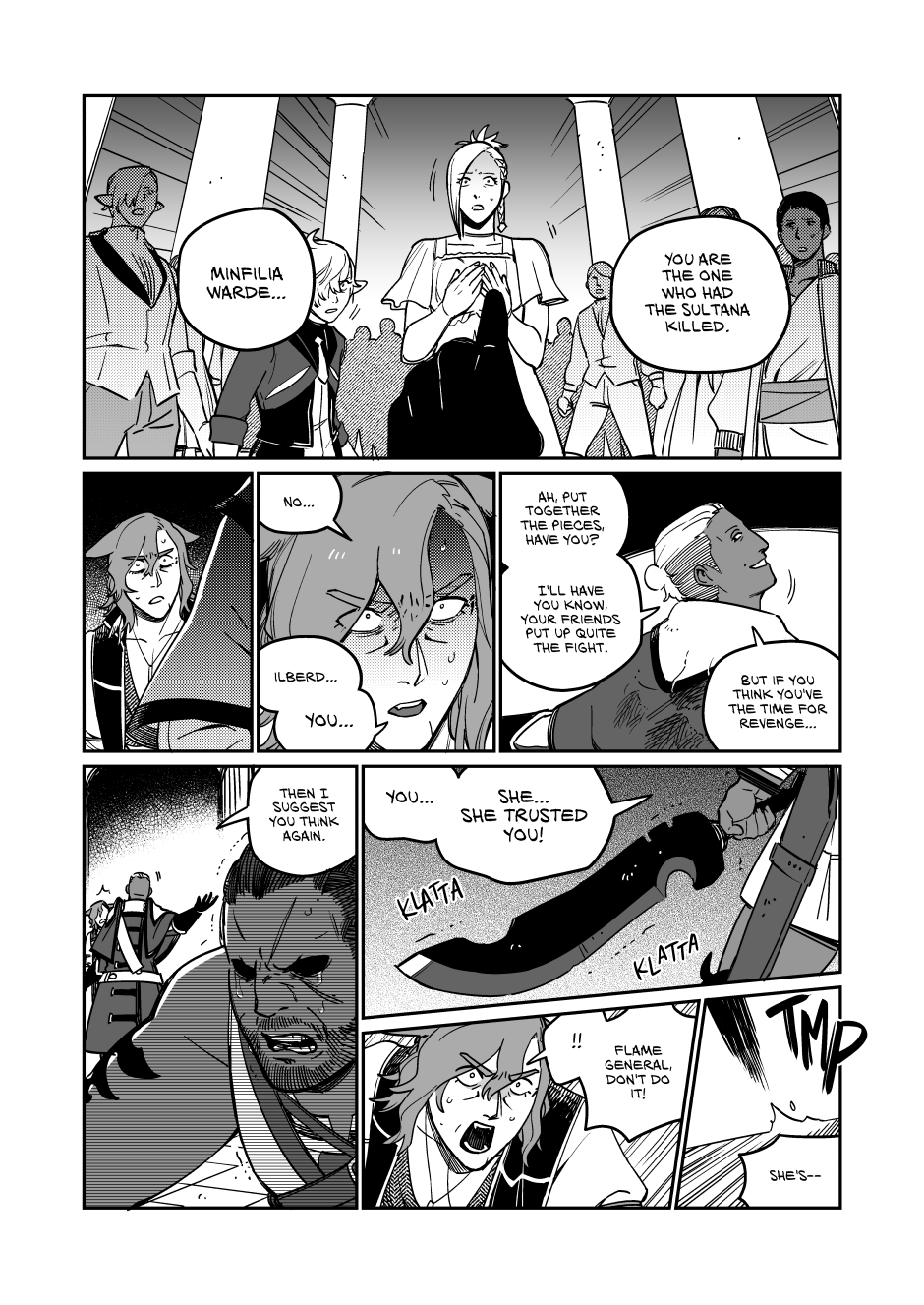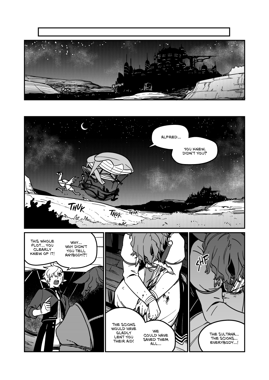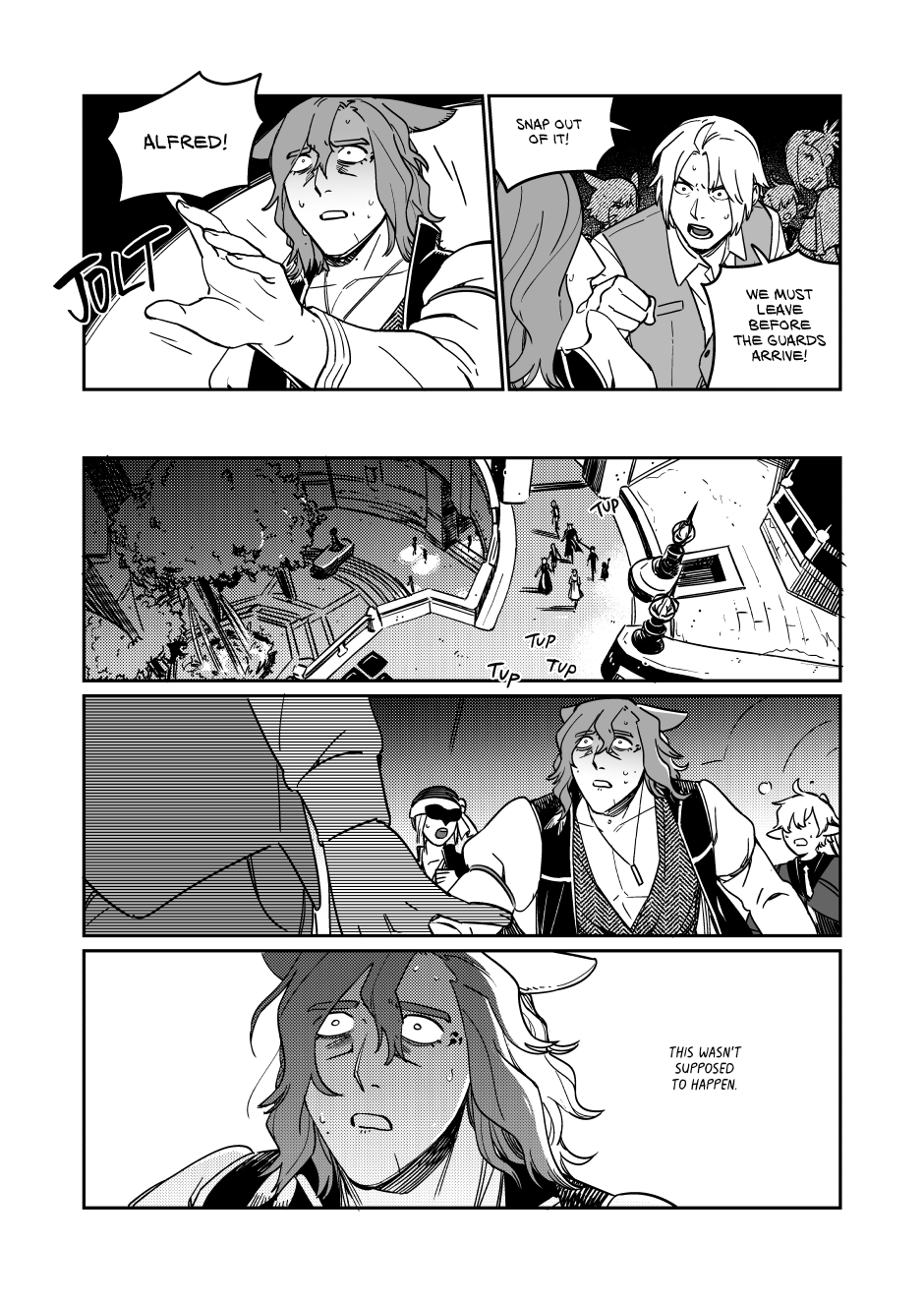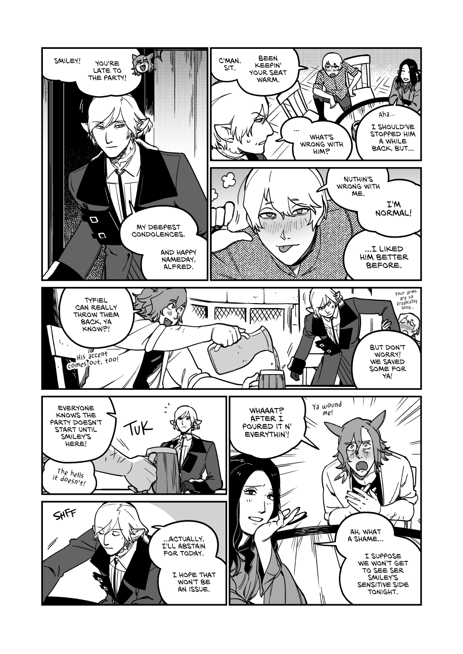 1) subverting expectations: Up to this point the main plot since Alfred, Smiley, and Tyfel has largely followed the main plot with very minor changes, so much so that major story events are completely skipped over with usually only a few references, instead the plot has focused on developing and getting the main quartet with the overarching being just an assumed background feature. This has created an assumption for the reader that the main plot would be an unshakeable monolith that would always follow the exact beats of the game. So when anyone saw the warning in the beginning we all thought we knew what was going to happen, the only uncertainty was how the main four would react to it.