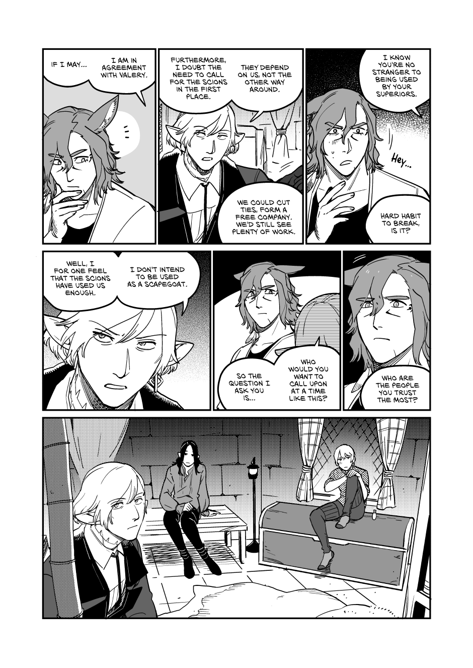 2) The separation of the main characters: The last chapter made it clear that the duties of being the warrior of light have been divided between each of the main characters and this chapter that has led to interesting but realistic consequences. The division of work has led to the main quartet considering themselves a team, but a team separate from the scions who they mostly just consider their contractors, people who they don't fully trust and generally don't think would have their back if the worst came to the worst