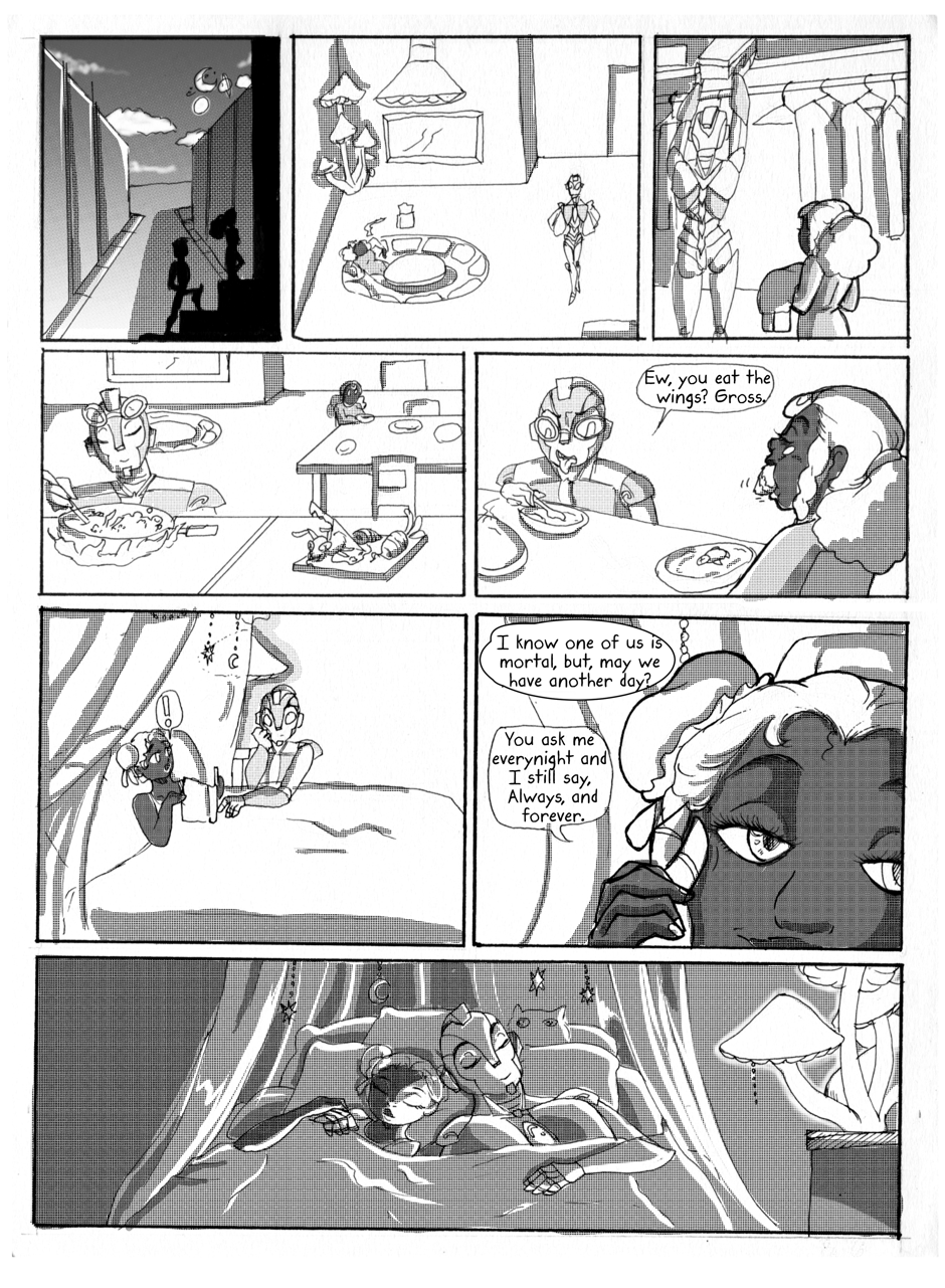 (resides in the same universe as moonlit lemonade.Mache and Mata originally came from a college project where we'd have to make a 6 page apocalyptic comic, I figured I'd revive it. Some paged are done traditionally, especially the first ones.)