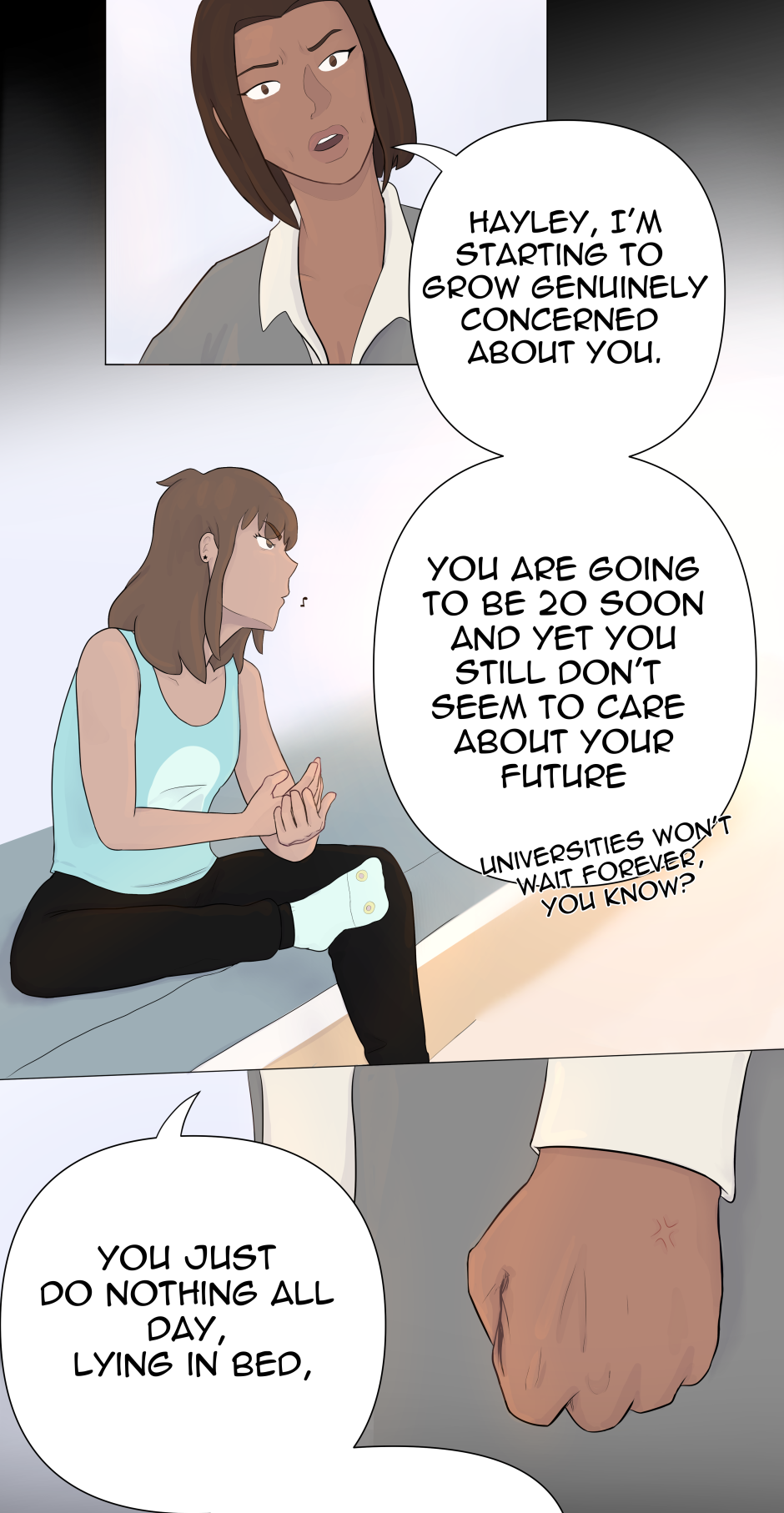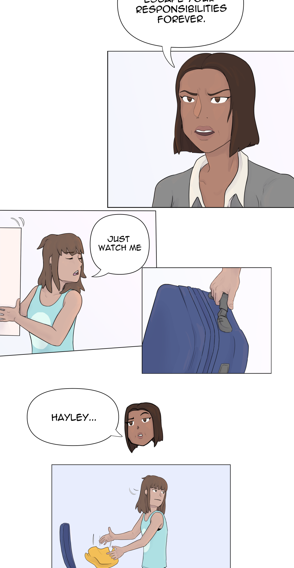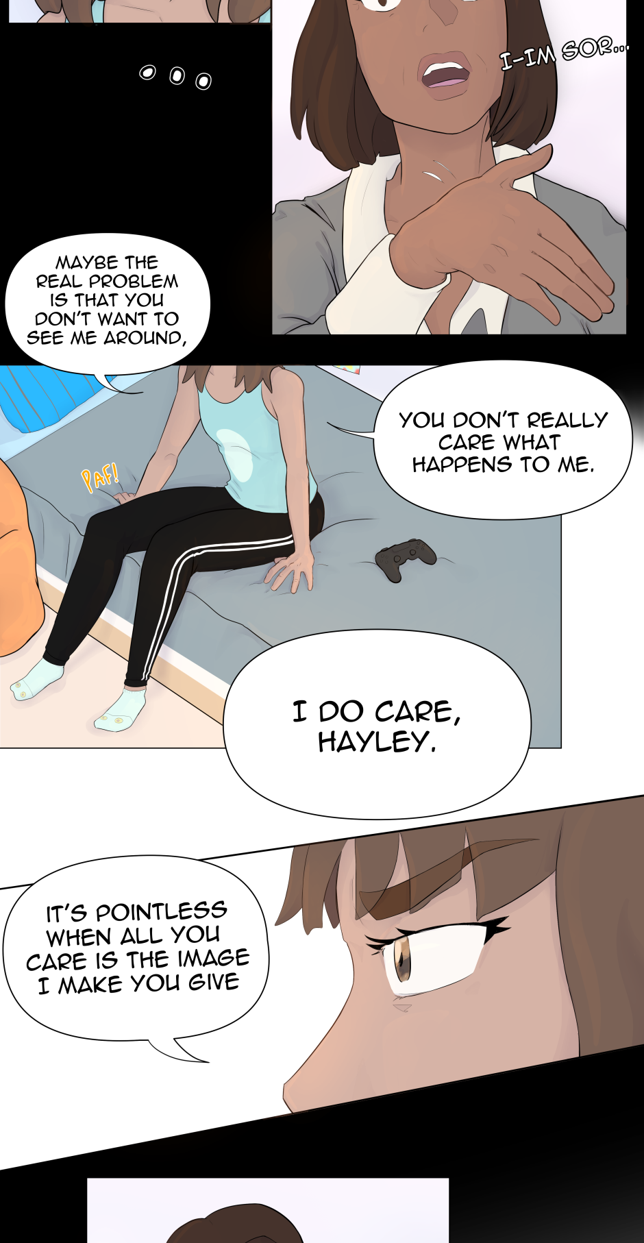 Gosh, again pointing out how I just really love the way you do your facial expressions. After that slap, the way Hayley looks at her omg But I also really like that you add in humor to take some of the tension away. Like how she was just looking for her phone and getting accused of lying on the ground lol