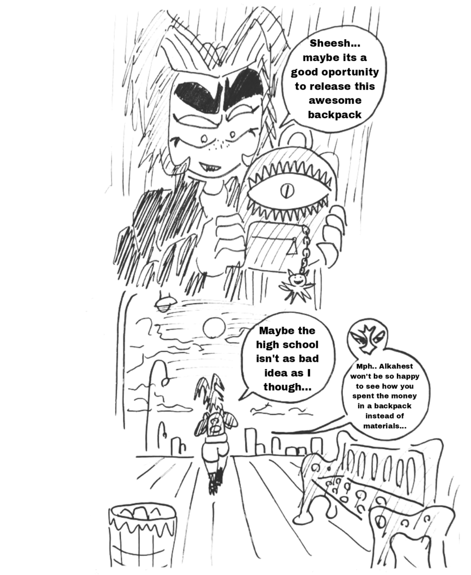 Vallcia is rebel, disrrespectfull and lazy girl who pass her days with Grunger, her simbiotic jacket with high combat habillities and Alkahest, a guy on his twenties with patience to treat with her, forcing her to rejoin on the society and with this, make friends on High School, Awfull!! She is chased by her cousin House, which wants her back on Iceland, si he will be forced to hire the service of a mysterious HitWoman for her catch