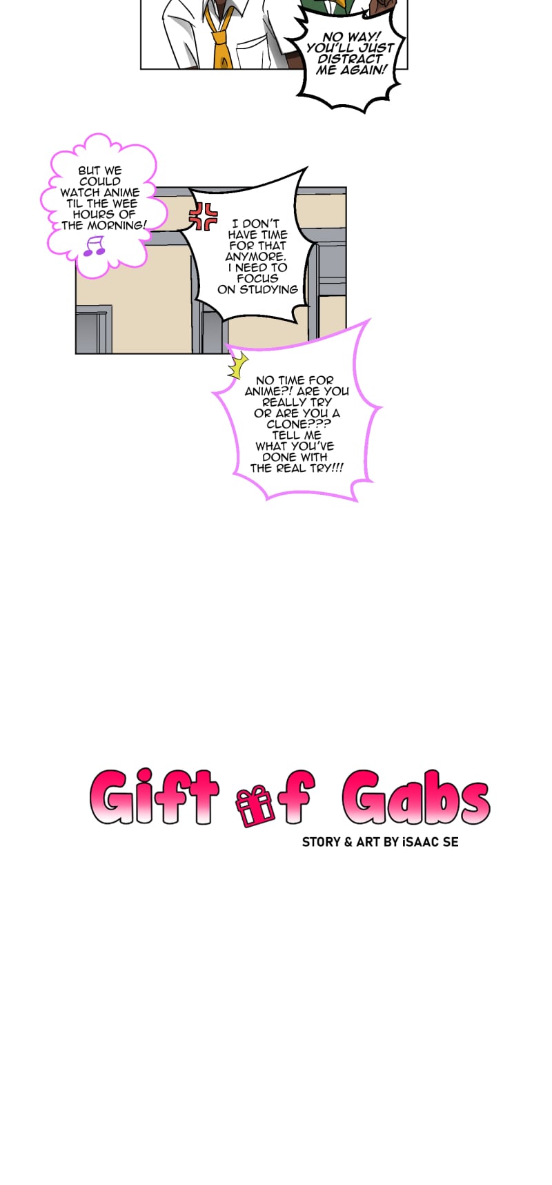 Try goes to Willy Nilly High, and his grades are trash. What’s worst is that his efforts to study are constantly prevented by his eccentric childhood friend and classmate Gabs, who pulls him into her time-wasting hi-jinx. Will Try ever raise his trash grades and overcome the uncanny talent of the Gift of Gabs?