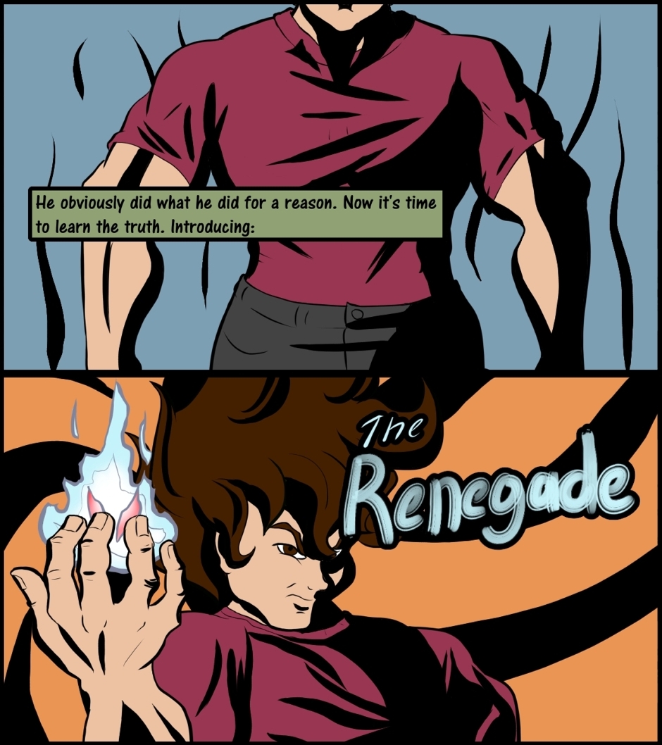 EDIT: I have updated this character's name, because the word "hero" does not really work for this comic. Renegade is a far more fitting term for the role he plays.