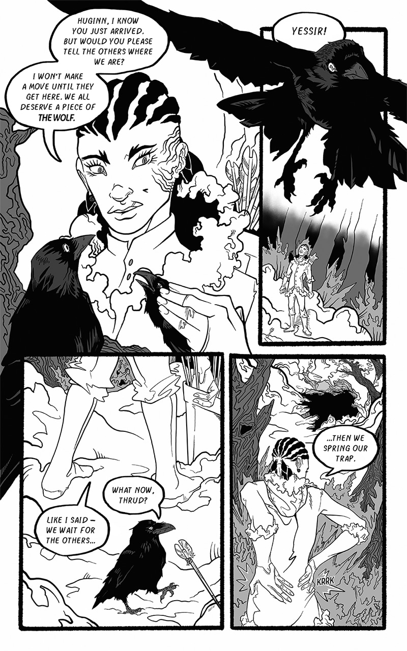 An ongoing webcomic chronicling Fenrir's journey across a barren, post-Ragnarok landscape. Hunted by the Norse Gods who desire vengeance he seeks to find his place in a future that is no longer pre-ordained.