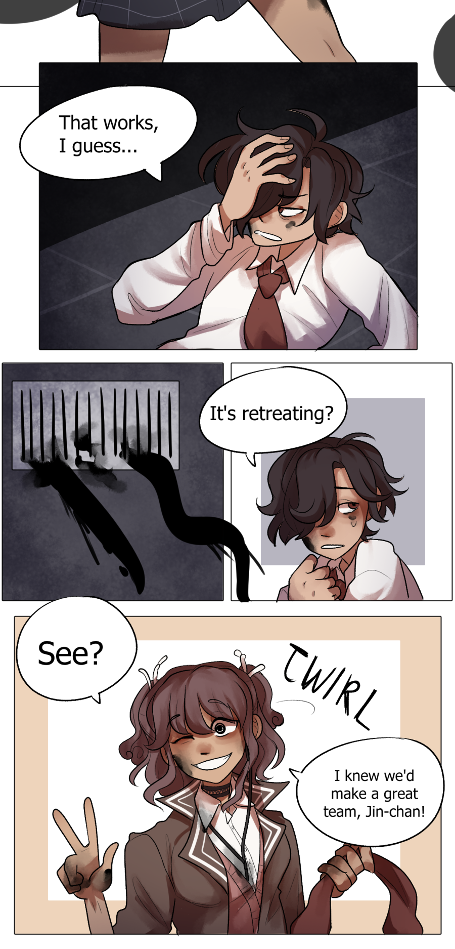 Ah, one of my favorite dynamics. Shy and quiet realist with loud psycho optimist.