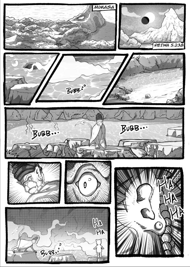 t’s a rather unusual day - eerily calm and shiveringly silent. No fellow monkeys can’t be seen bathing in the natural hot springs of the Mimasa piku (Surayama).