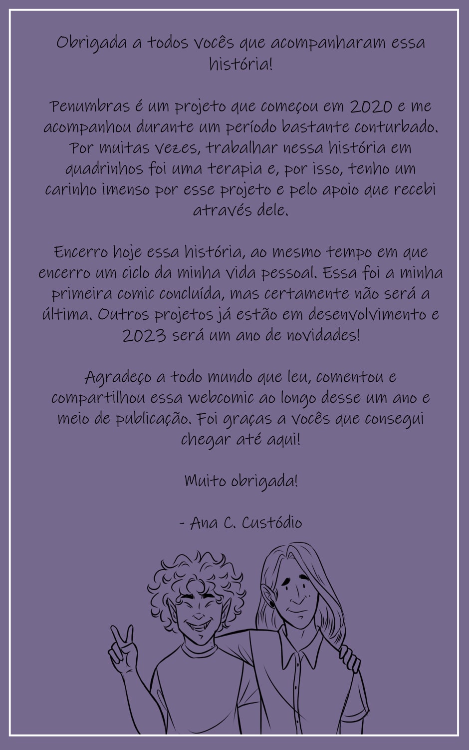 MUITO OBRIGADAAAA eu amei a história, obrigada por nos agraciar com ela🙌🏻 e mais obrigada ainda por cincluí-la e n abandonar. As vezes pros leitores tb é terapia ler algo bom aqui, como a sua história.