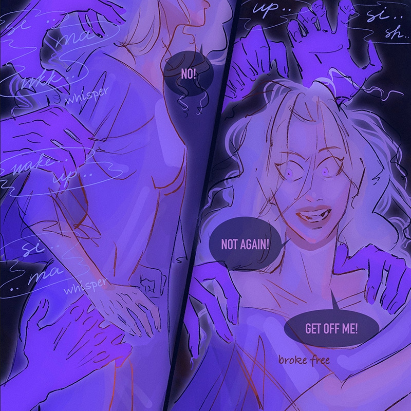 A dark gloomy castle with endless stairways and an ancient library. Scary, mysterious creatures live here, hiding in the night.